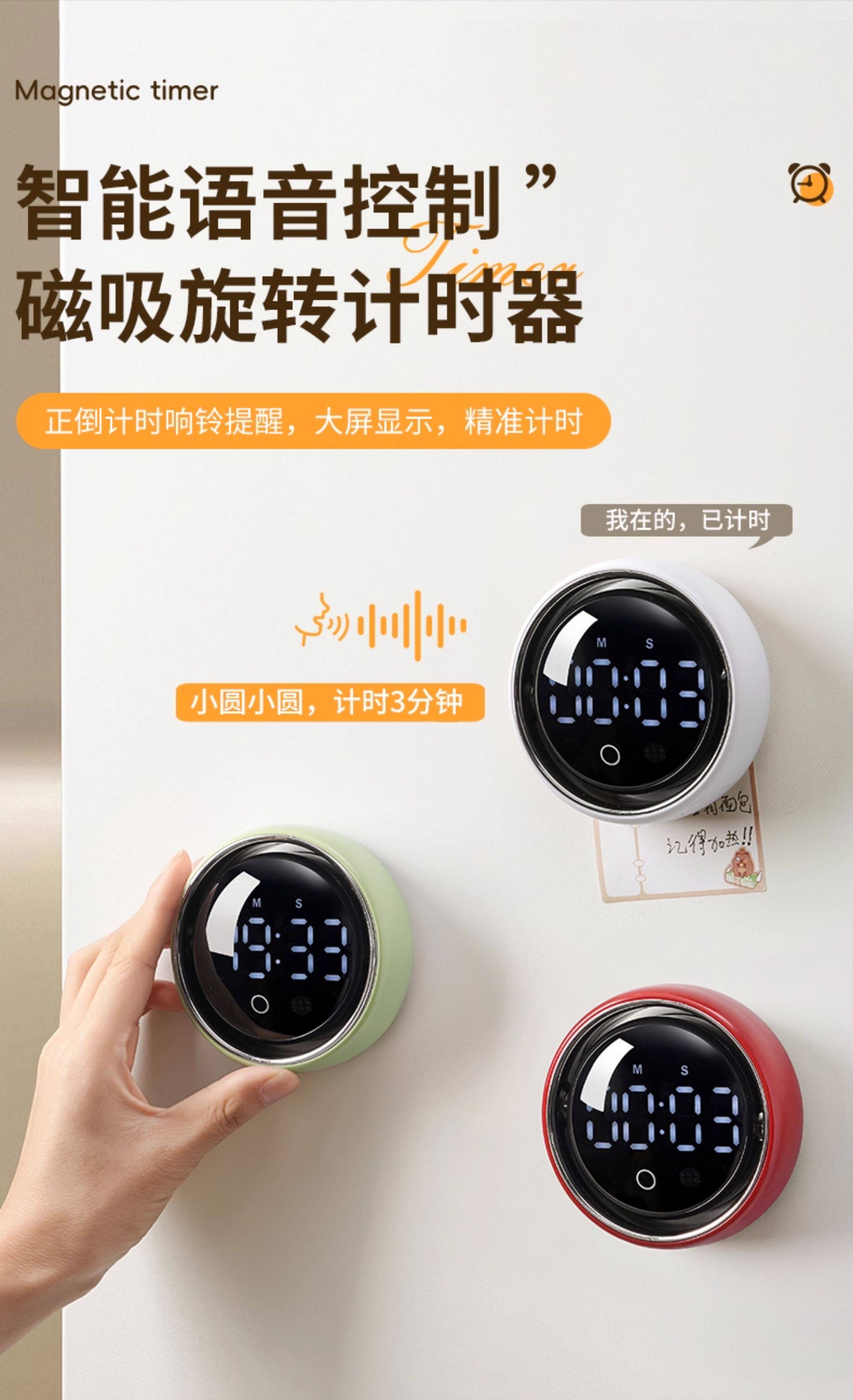 Smart Kitchen Timer with Voice, Magnetic, Home Alarm Clock, Timer for Elementary School Students, Self-Discipline Tool, Countdown Reminder