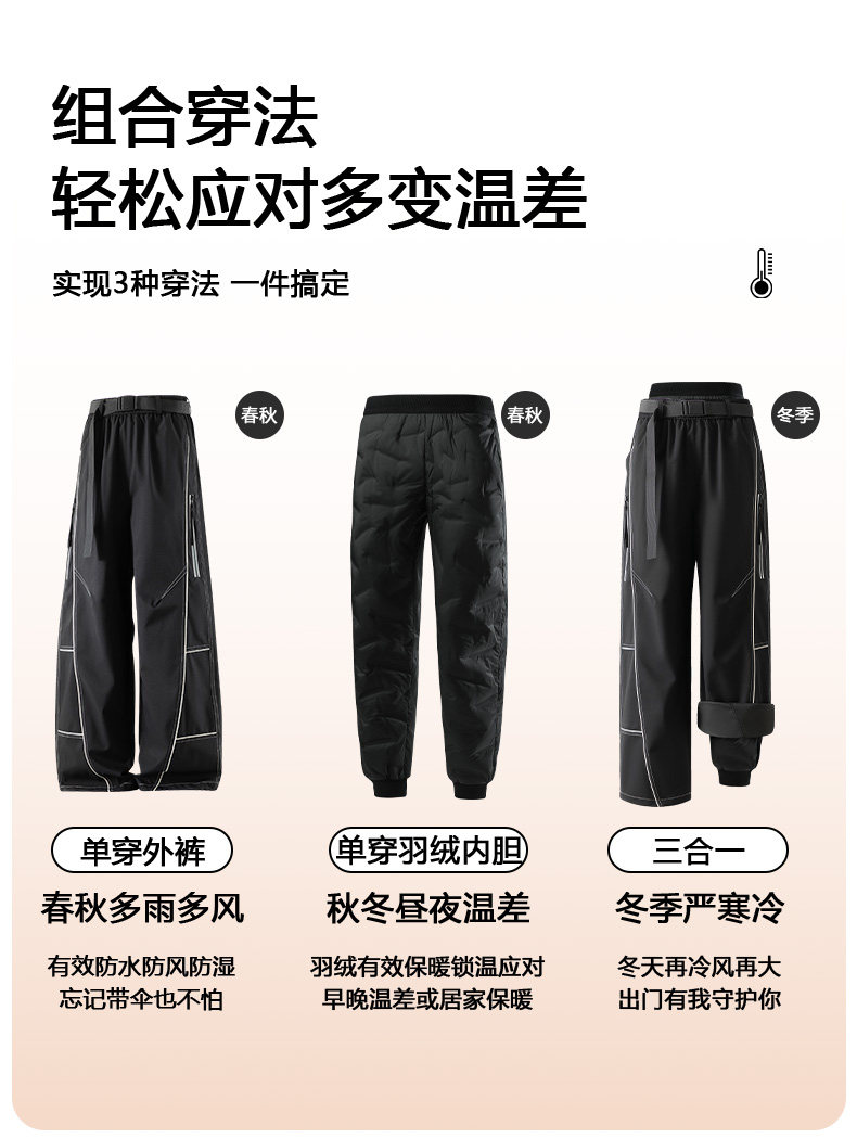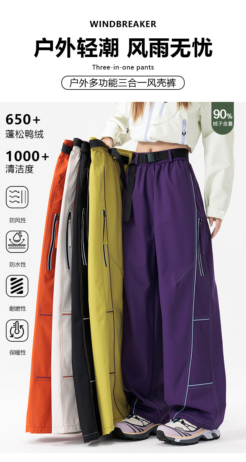 Wassup Cmkpo Three-In-One down Jacket Pants for Women, Outdoor Waterproof Mountaineering Pants with Removable Liner, Ski Pants for Men
