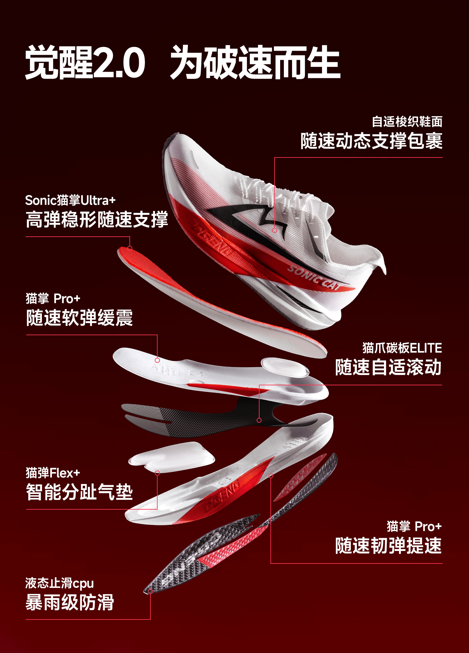 Sonic Cat Awakening 2.0 Carbon Plate Air Cushion Running Shoes Official Flagship Store Physical Exam Training Running Shoes Men's and Women's Sports Shoes