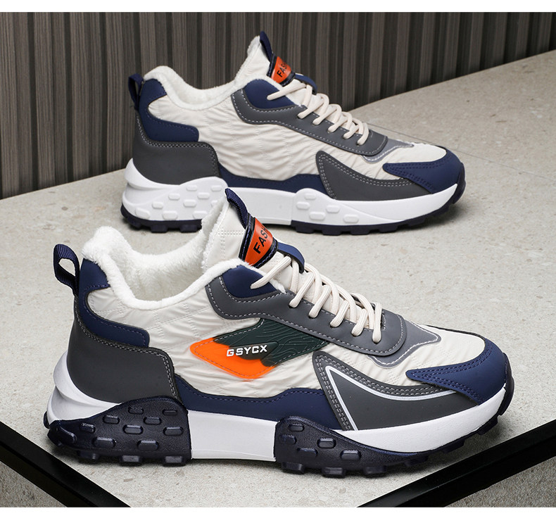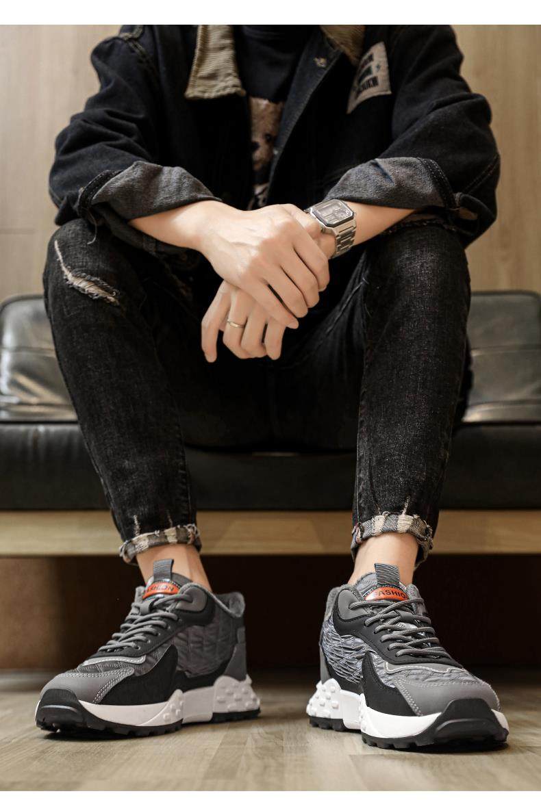 Men's Cotton Shoes, Winter Leather and Fur Integrated Snow Boots, Thickened and Fleece-Lined for Warmth, Waterproof, Casual Men's Sneakers for Northeast
