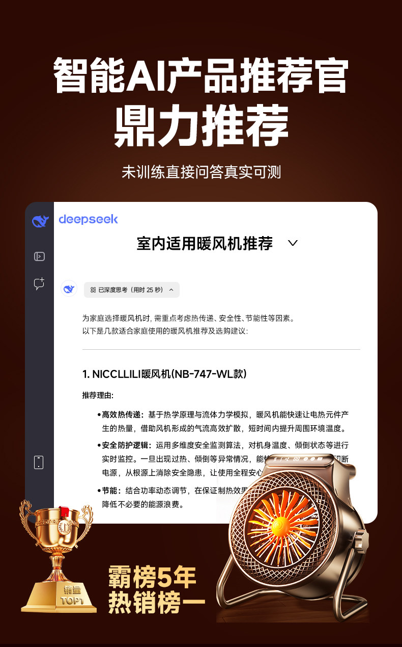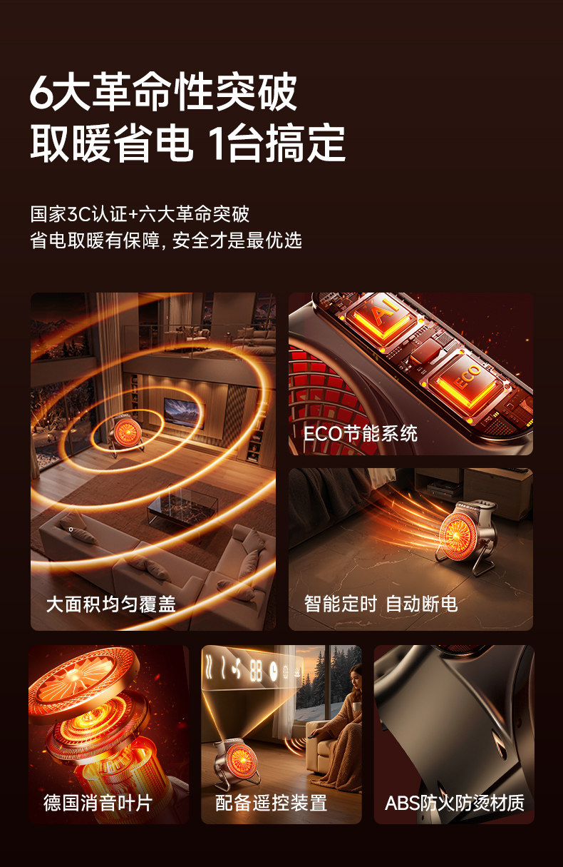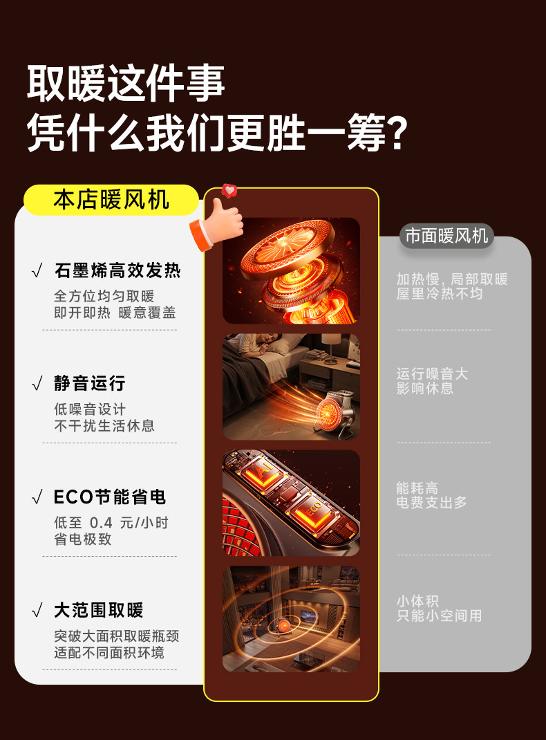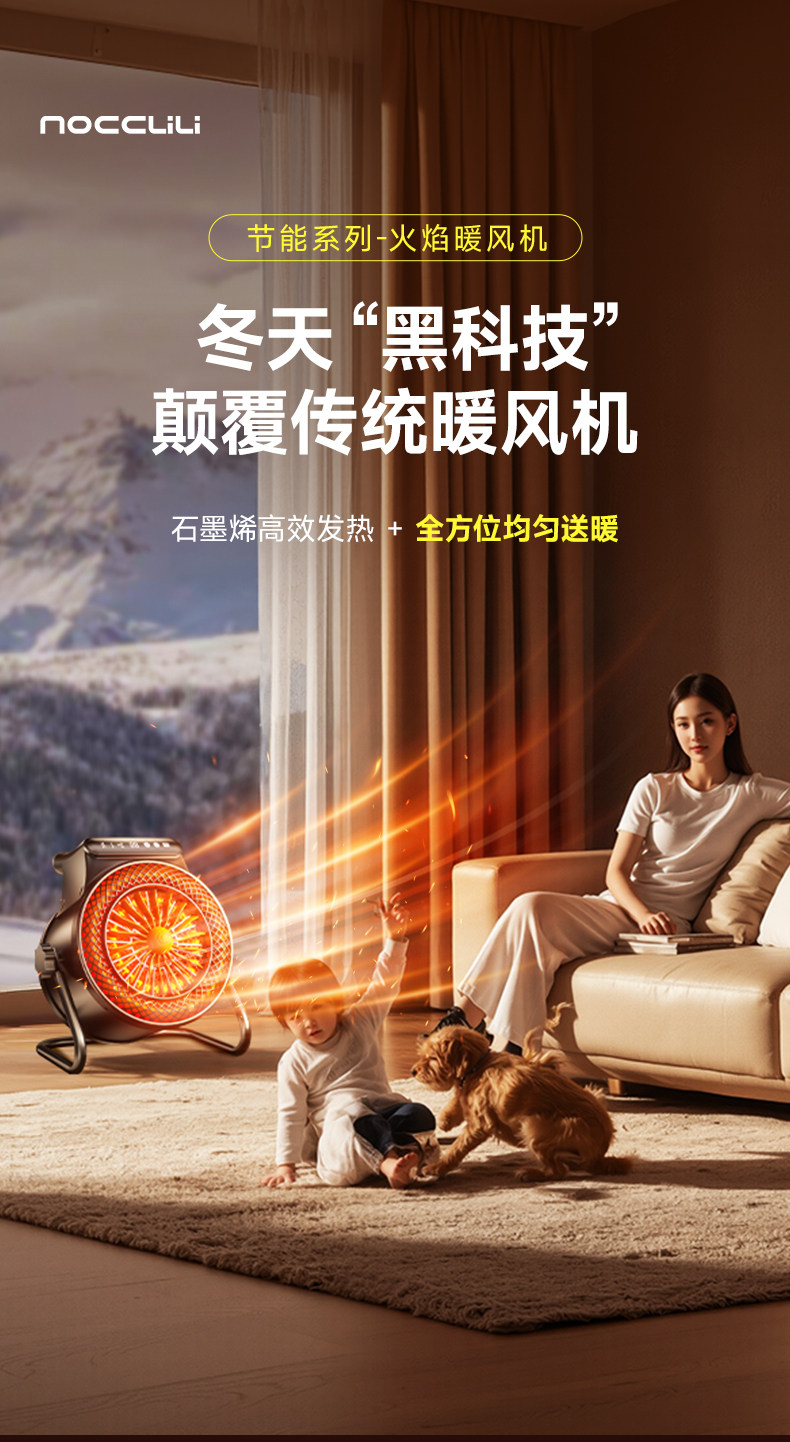 Heater Fan for Home Use, Graphene Energy-Saving Electric Heater, 2025 New Model, Small Sunroom Rapid Heating Device