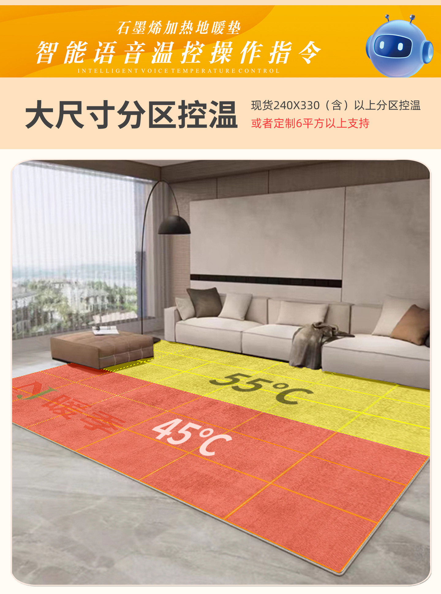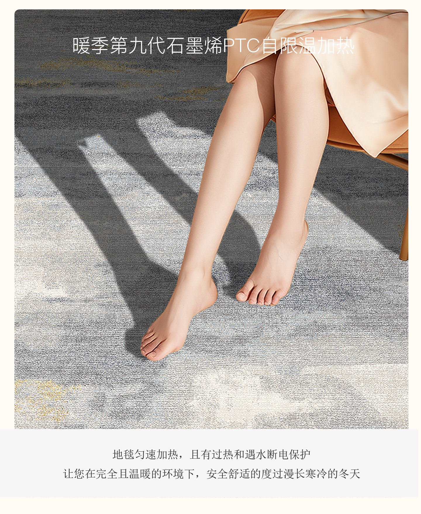 Warm Season Graphene Heating Carpet for Living Room, Home Floor Heating Pad, Waterproof Belgian Loop Pile, Removable and Washable Electric Heating Carpet
