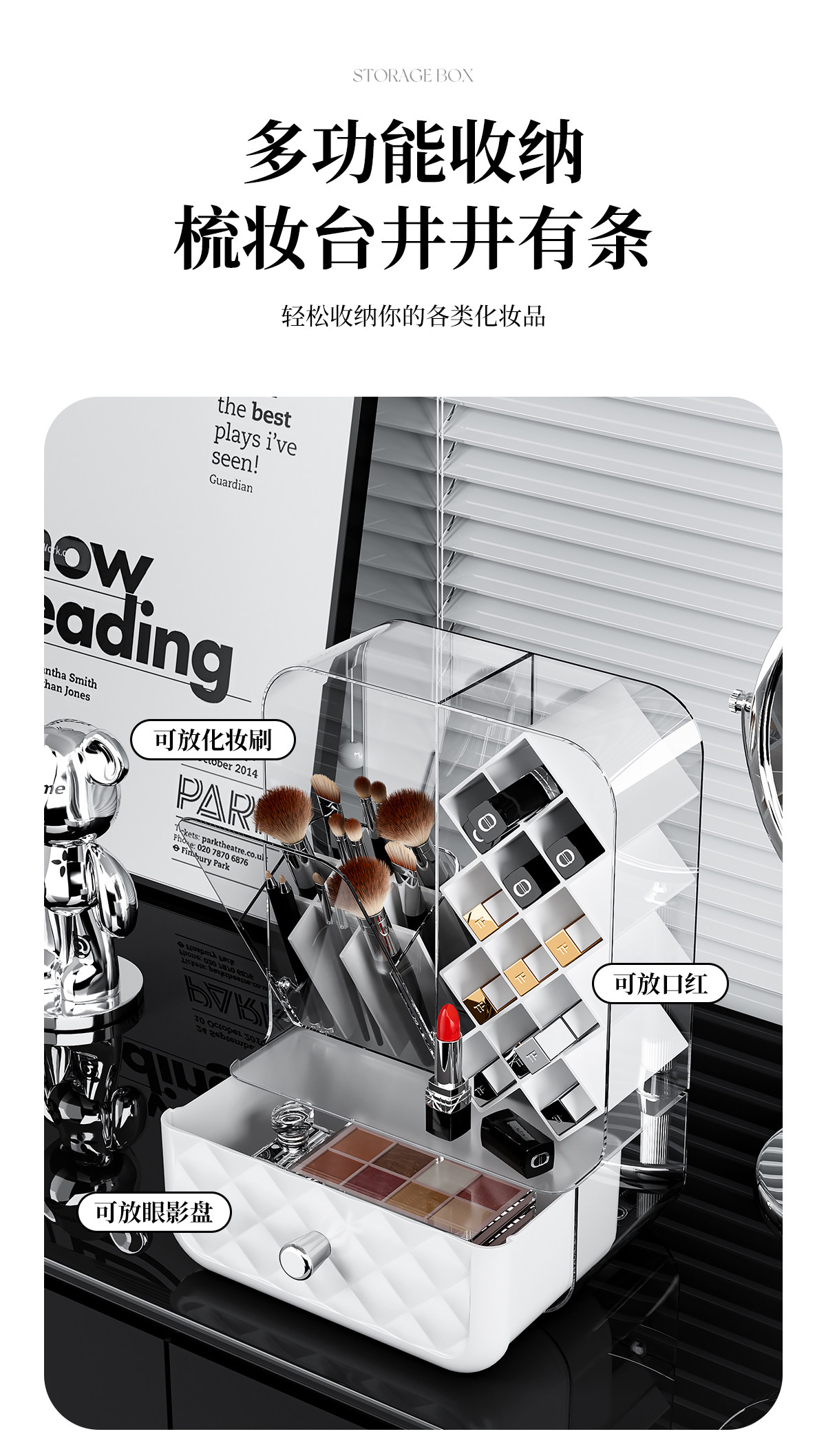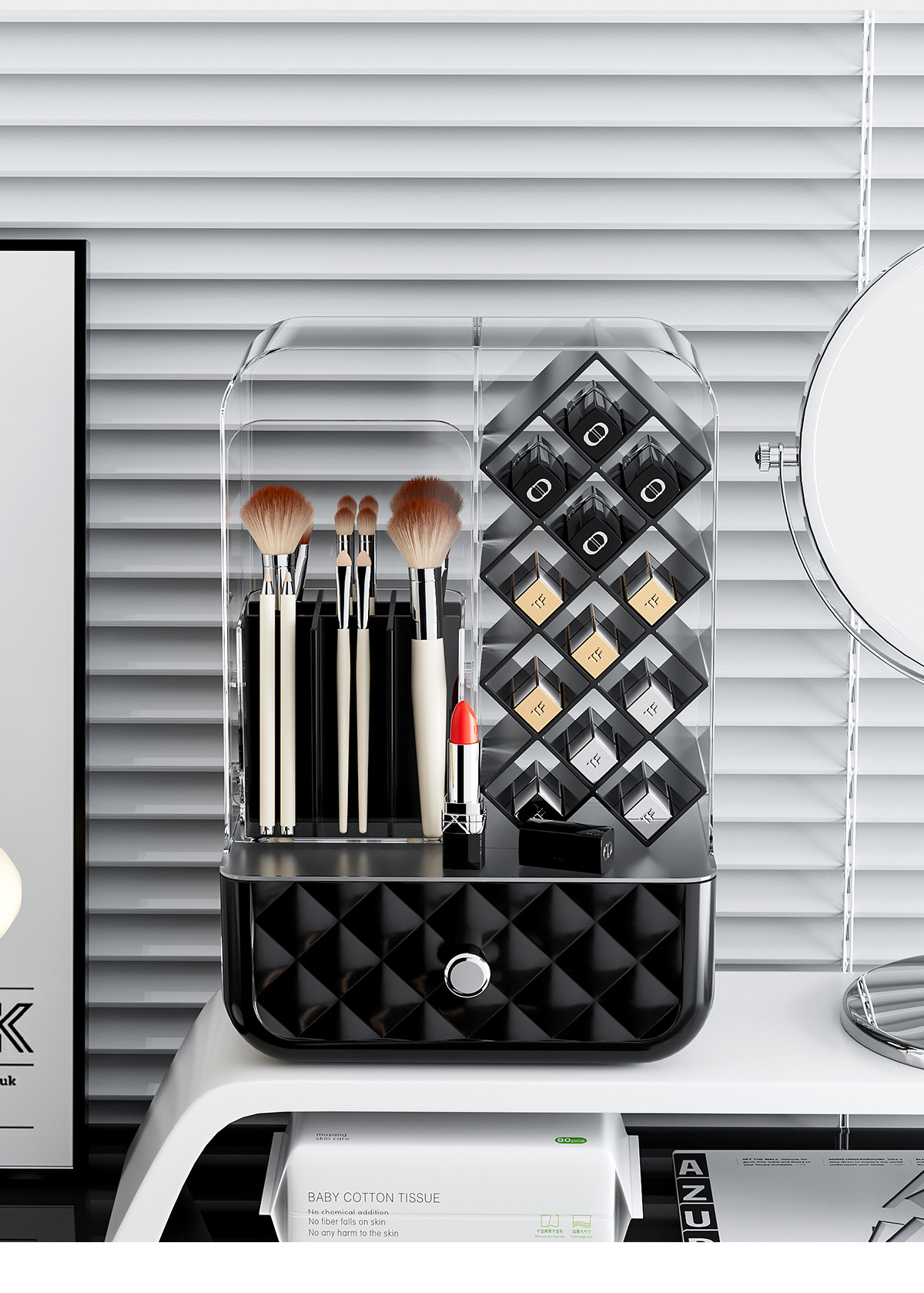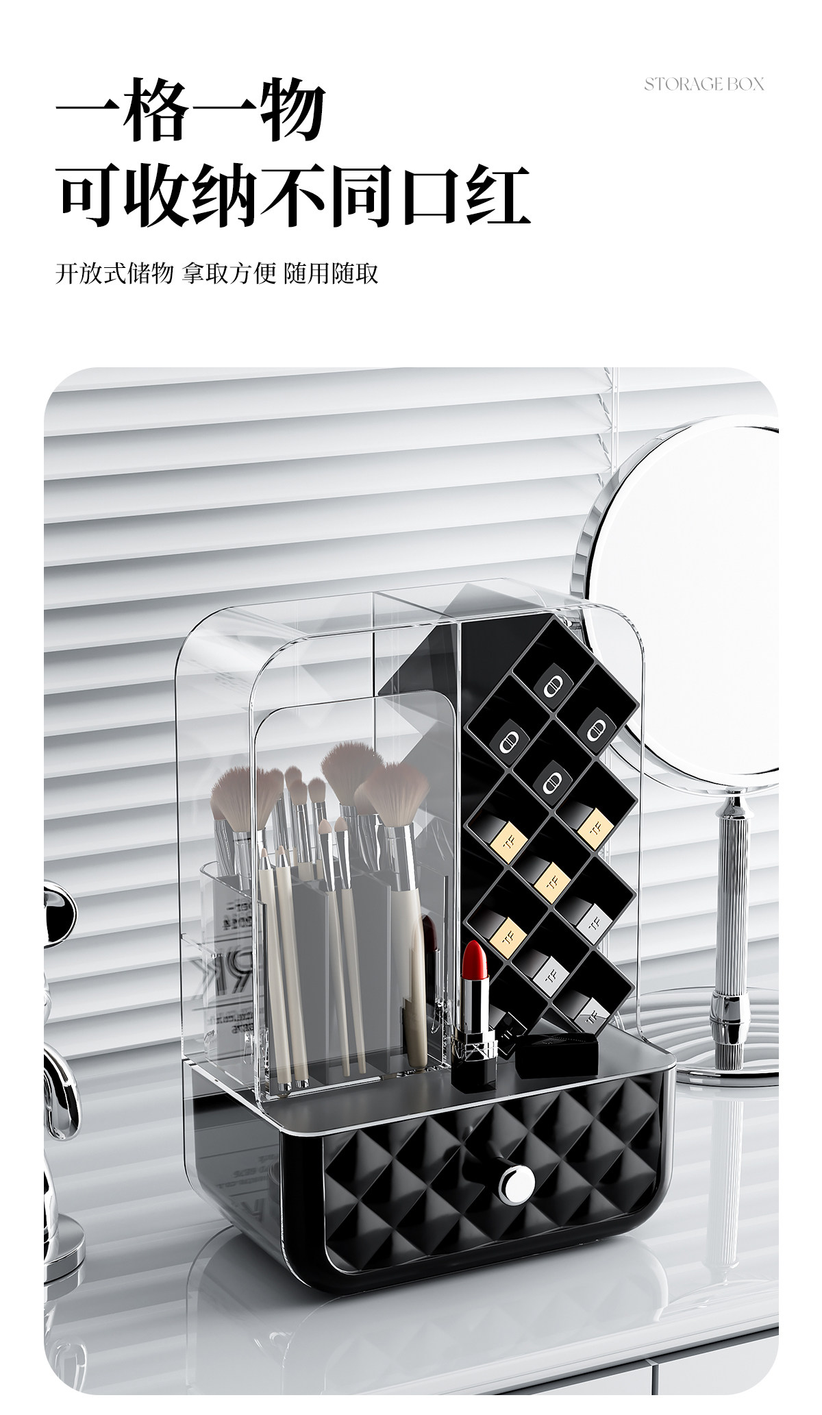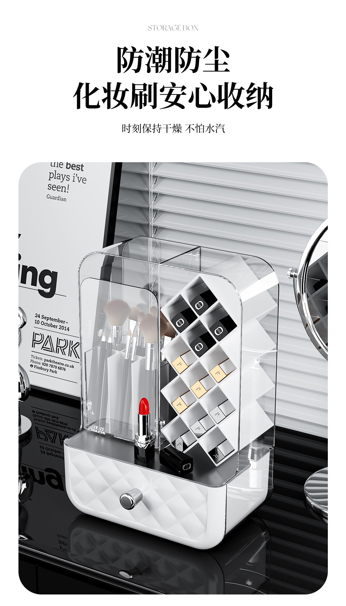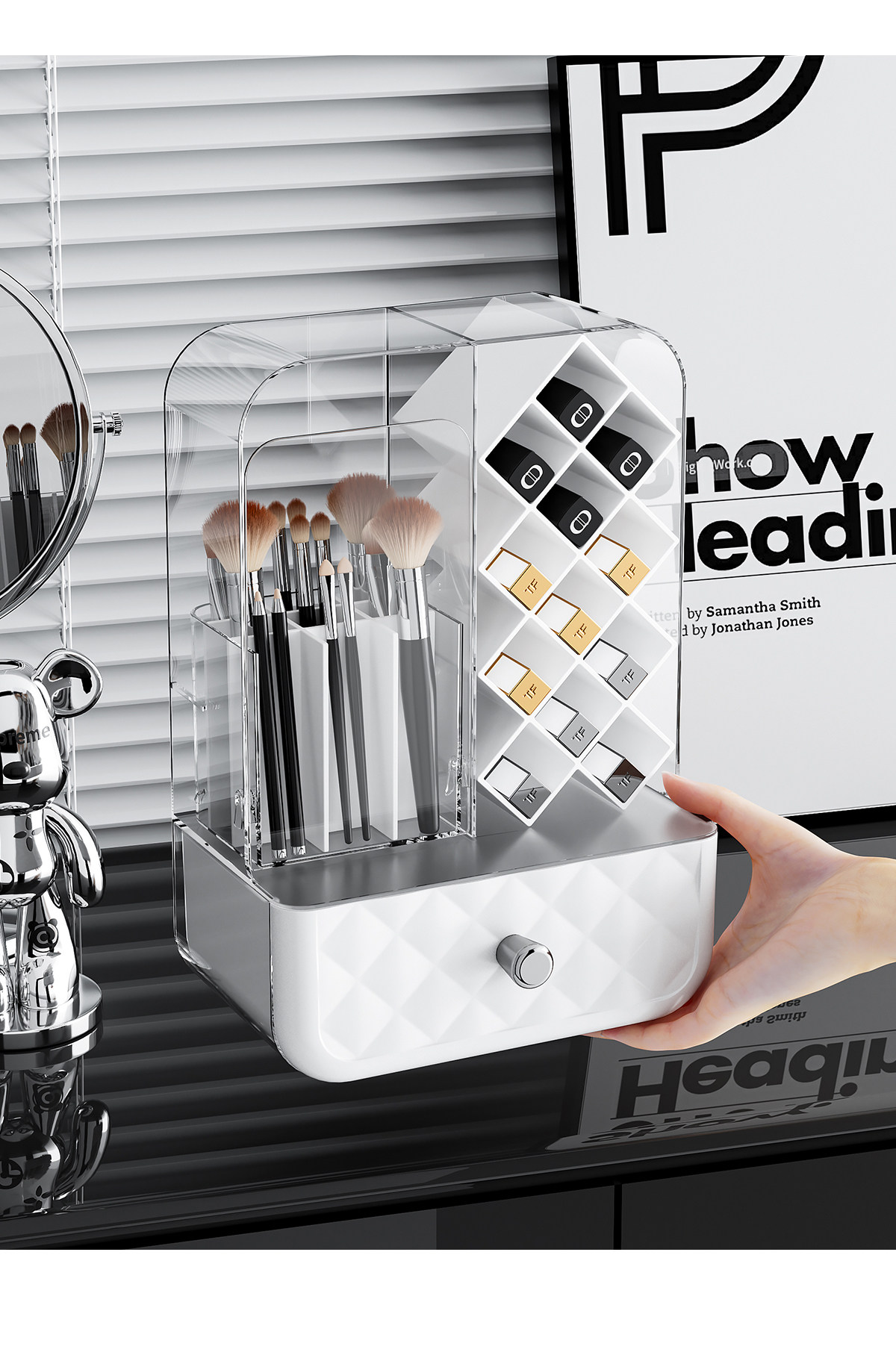 Lipstick and Makeup Brush Storage Box, Desktop Dust-Proof High-End Brush and Eyebrow Pencil Organizer, Dressing Table Cosmetics Storage Rack