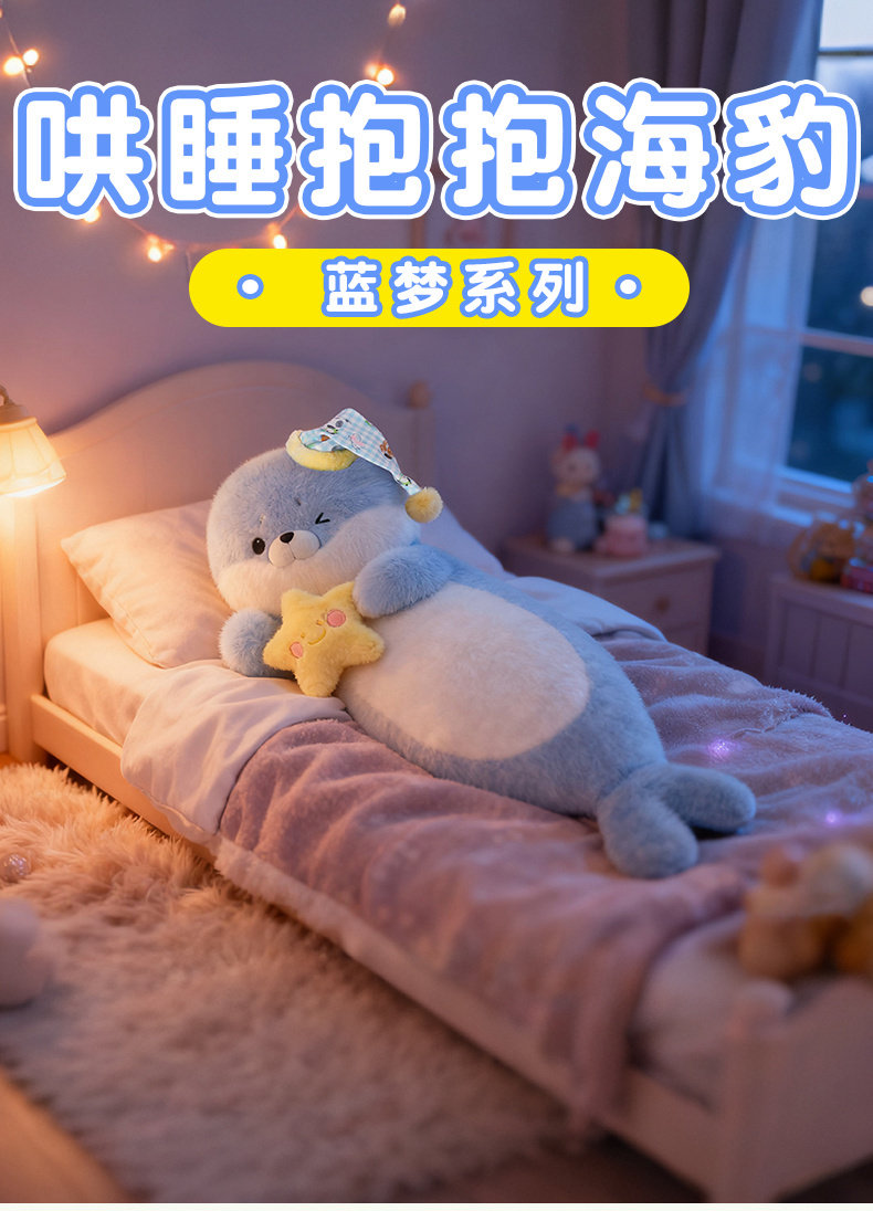 Authentic Sleeping Cap Seal Plush Toy, Cuddly and Soft for Sleeping on the Bed, Cute Sleeping Doll, Birthday Gift for Men and Women