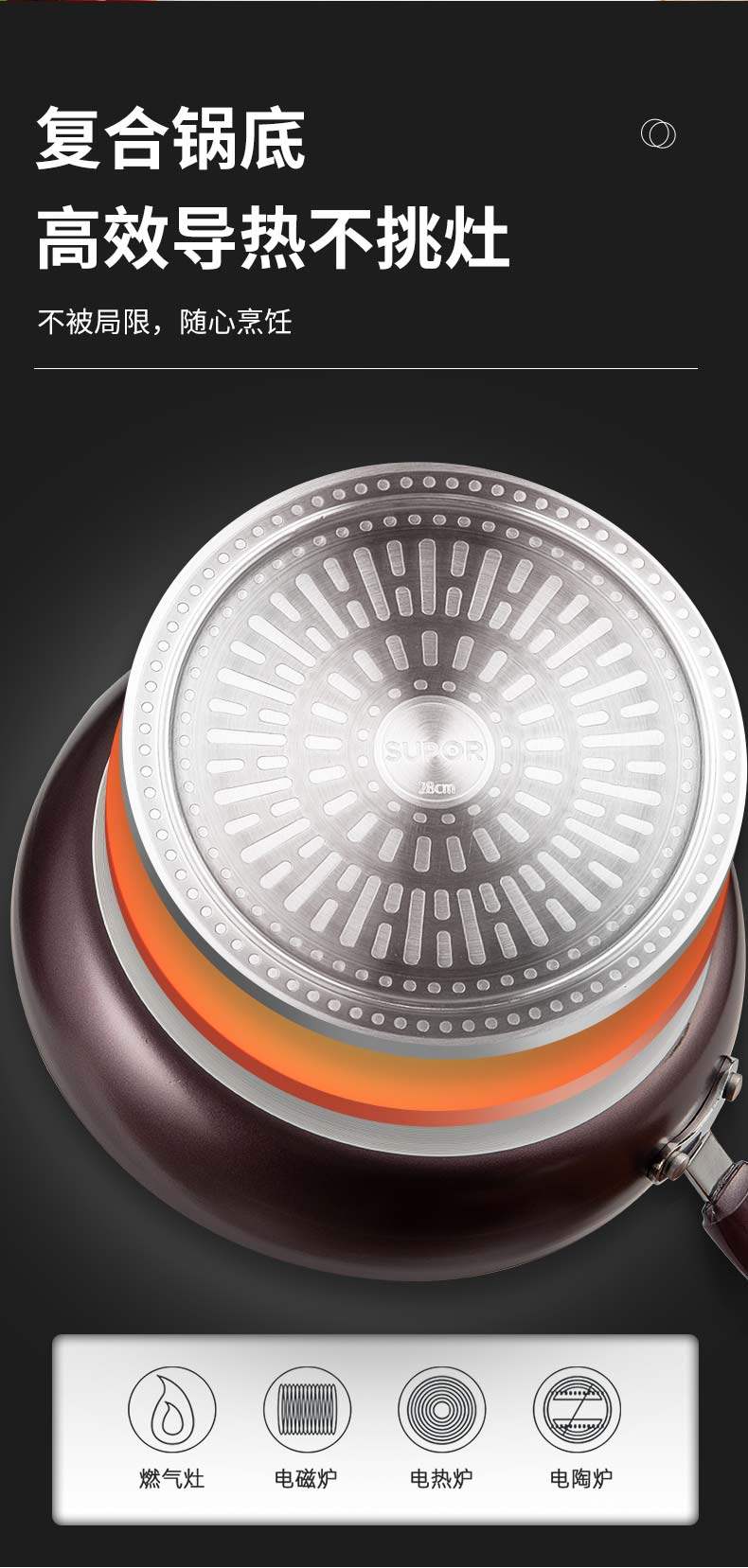 Supor Non-Stick Frying Pan for Home Use, Steak Frying Pan, Pancake Pan, Egg Frying Tool, Suitable for Induction Cookers and Gas Stoves