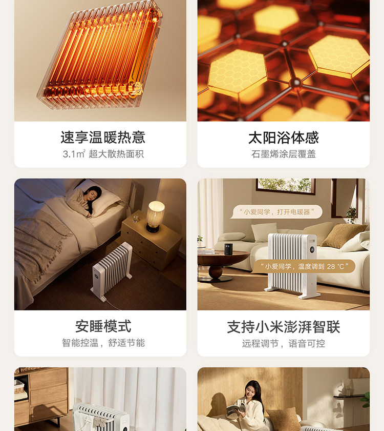 Mijia Graphene Oil Heater for Home Use, Energy-Saving, Fast Heating, Constant Temperature Electric Heater, Smart Oil Heater