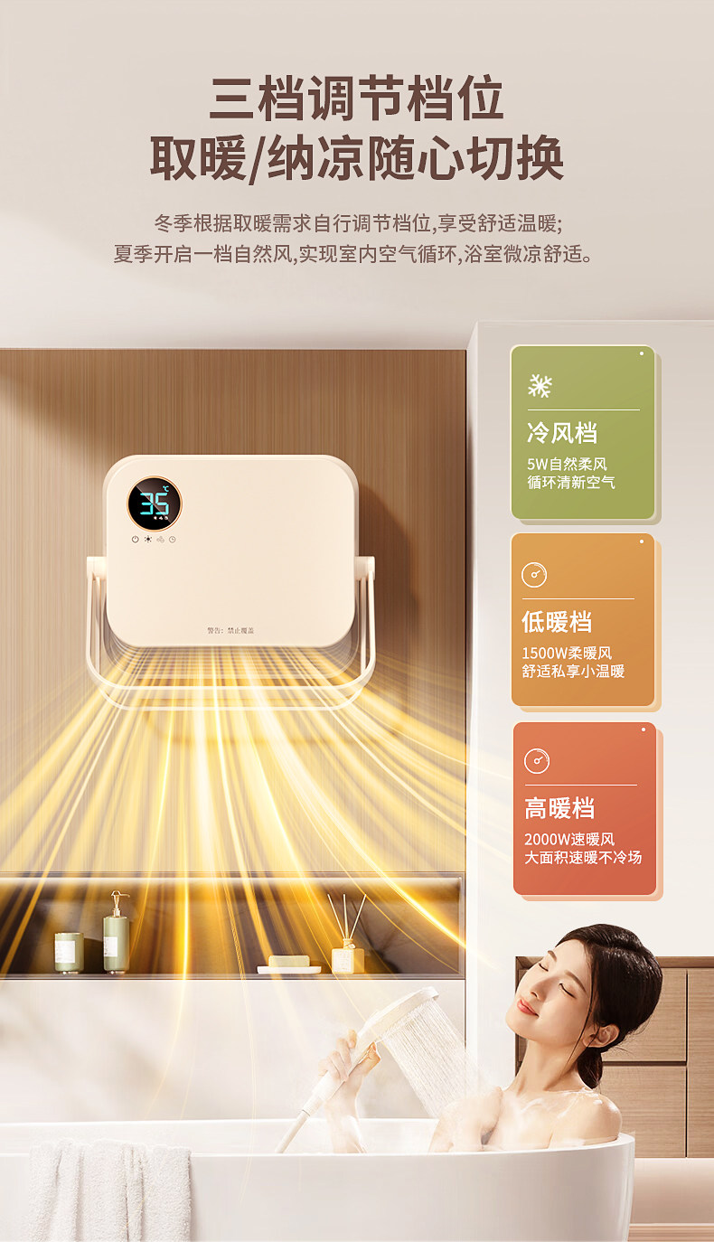 New Bathroom Heater, Waterproof for Home Use, Baby Bath Air Conditioner, Winter Bathroom Special