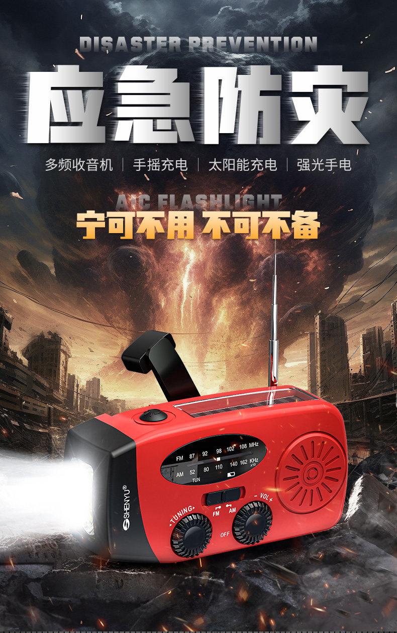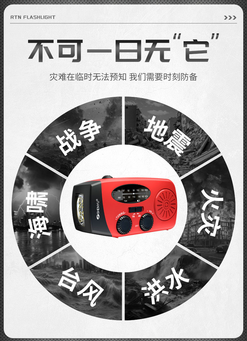 Solar-Powered Emergency Hand-Crank Radio, Disaster Prevention and Combat Readiness, Multi-Functional Power Bank, Flashlight, Doomsday Survival Kit
