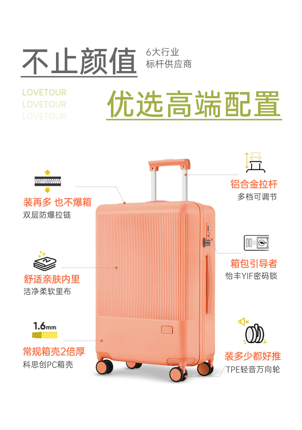 Lovetour High-Quality Papaya Orange Suitcase for Women 2025 New Model with Universal Wheels, Lightweight Carry-On Luggage 24inch