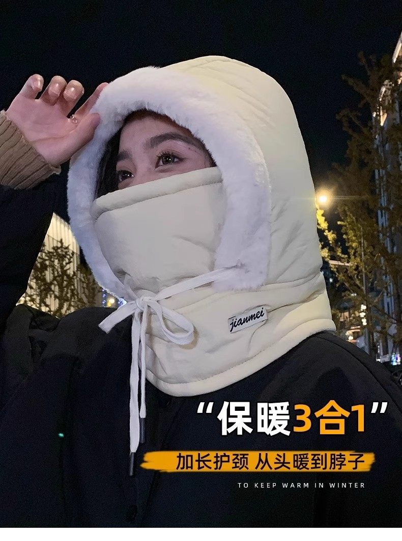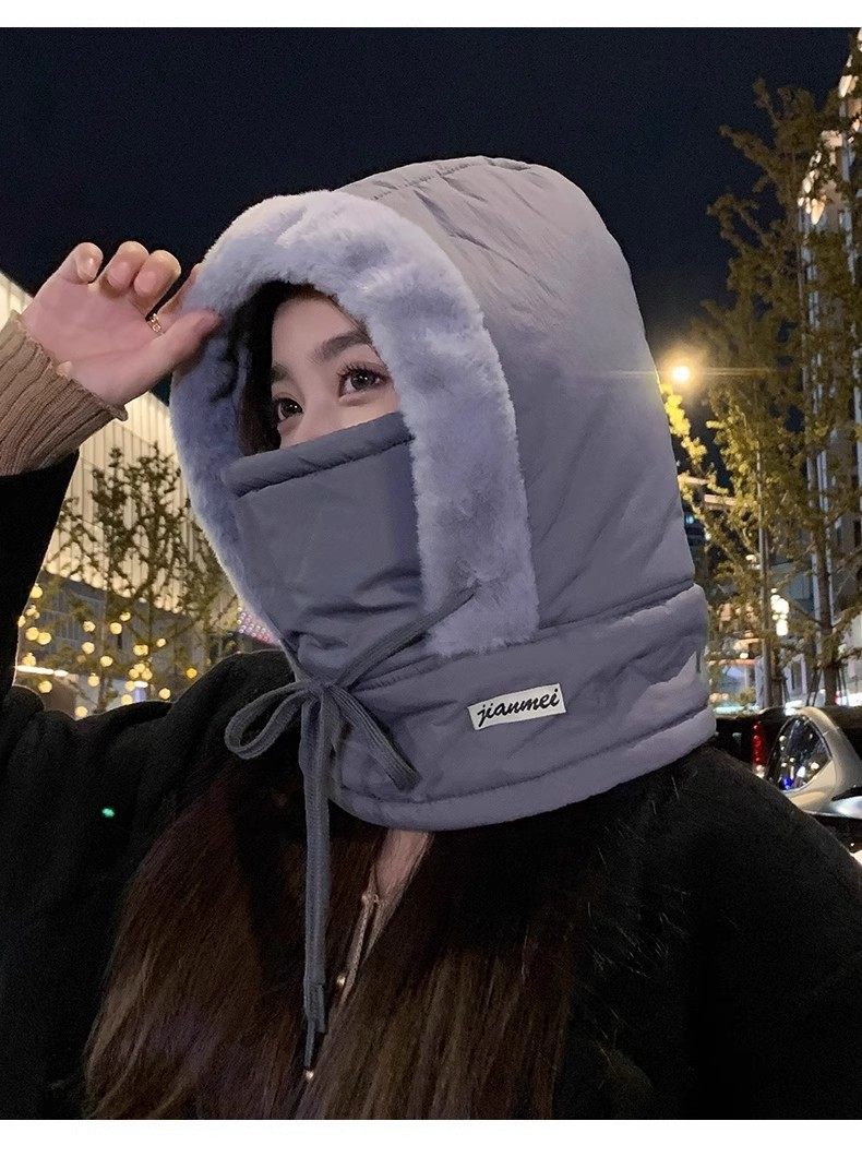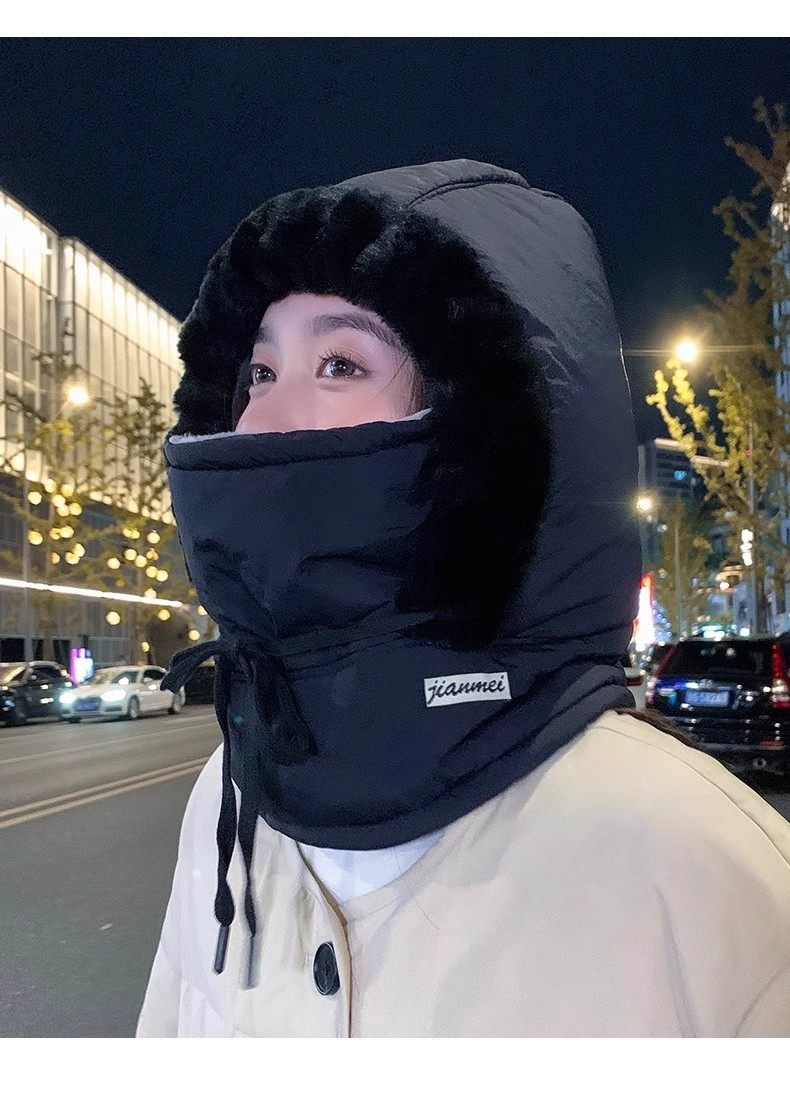 Winter Warm Lei Feng Hat with Fleece Lining, Thickened Cold-Proof Mask and Neck Warmer Integrated Hat, Outdoor Windproof Cycling Headgear