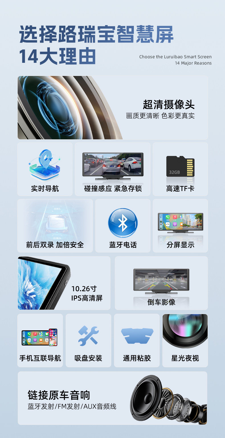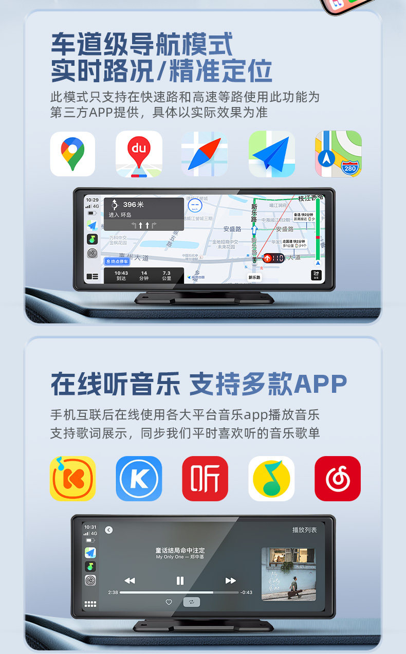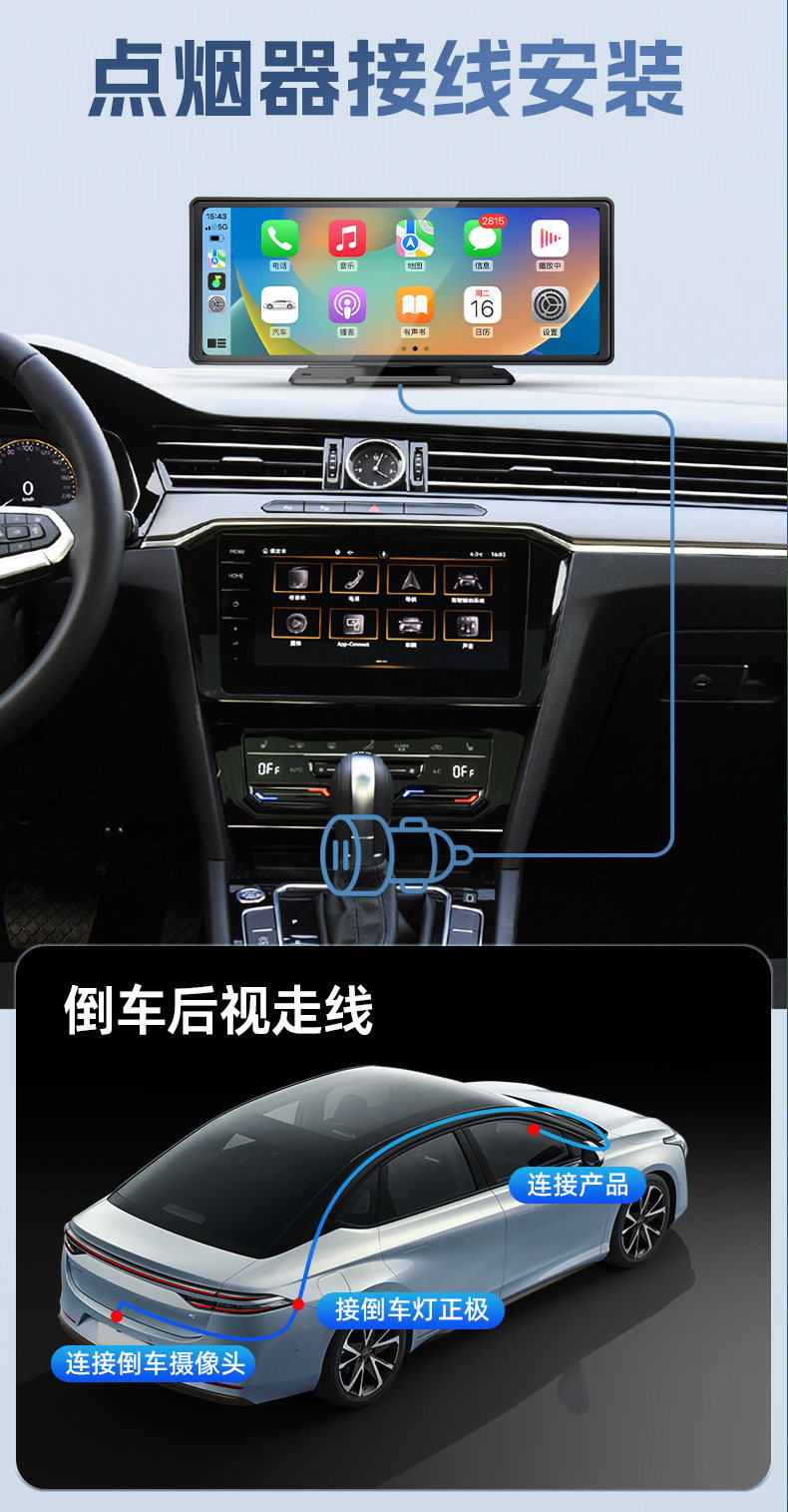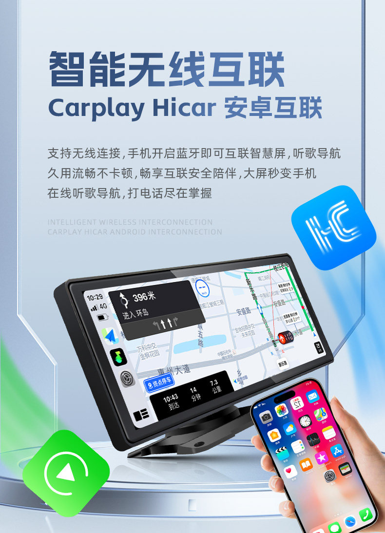 Lulibao Car Smart Screen Wireless Carplay Portable Screen All-In-One Center Console Navigation Hicar Recorder