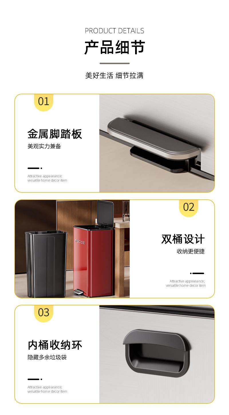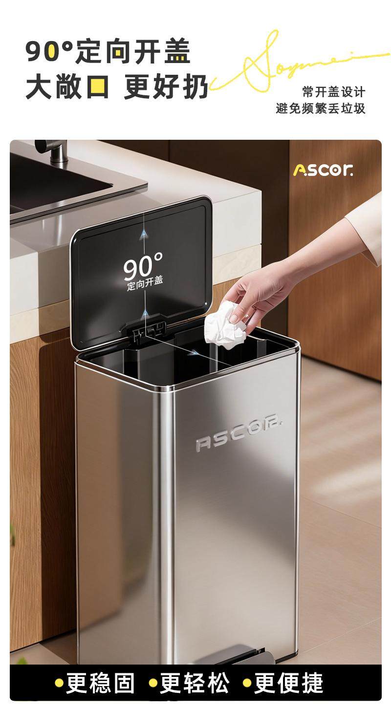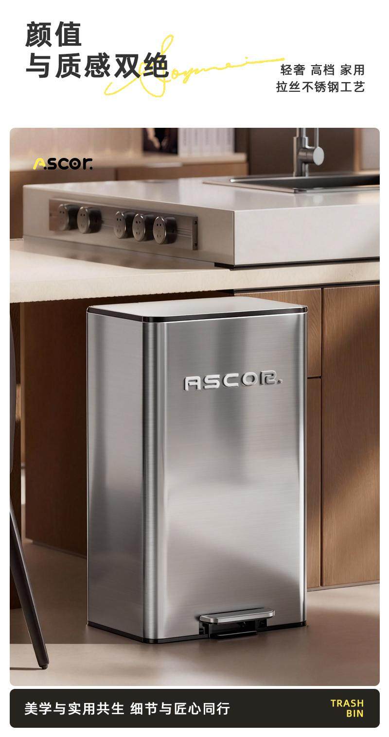 2026 New Model Household Kitchen Stainless Steel Trash Can, Large Capacity, Foot Pedal, with Lid, Large Size, High Aesthetic, Light Luxury, High-End