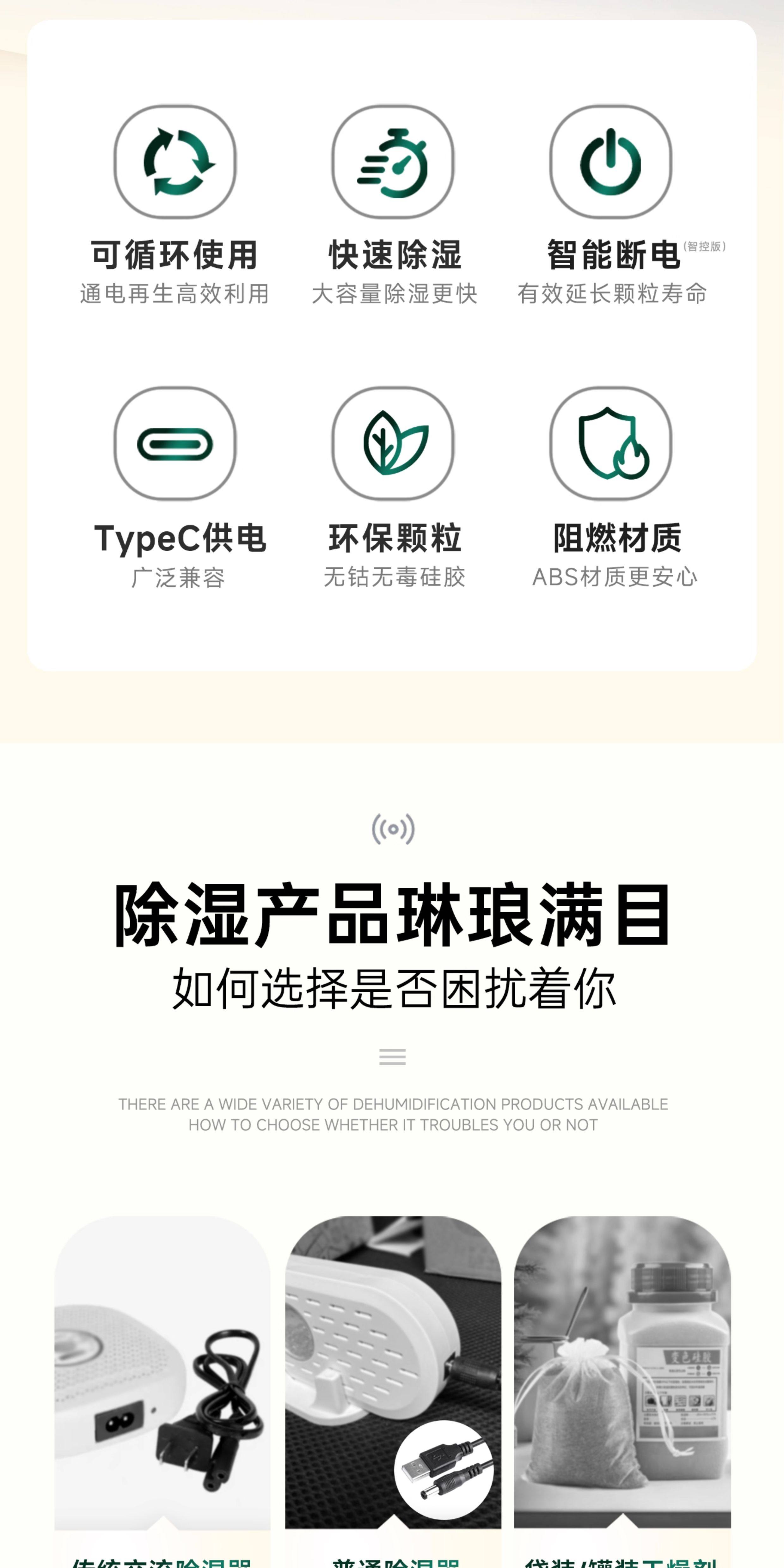 | Color Classification | [Recycling Use/Quick Dehumidification/Intelligent Power Off],Smart Control Version [Electronic Dehumidifier] Intelligent Automatic Power Off - Power Cord Included,Smart Control Version [Electronic Dehumidifier + Thermohygrometer] Intelligent Automatic Power Off - Power Cord Included,Smart Control Version [Electronic Dehumidifier X2 + Thermometer & Hygrometer] Intelligent Automatic Power-Off - Includes Power Cord,Standard Version [Digital Dehumidifier] Comes with Typec Power Cord,Standard Version [Digital Dehumidifier + Thermometer and Hygrometer] Comes with Typec Power Cord,Standard Version [Electronic Dehumidifier X2 + Thermometer and Hygrometer] Comes with Typec Power Cord,[Electronic Temperature and Humidity Meter] X1,Smart Control Version [White Electronic Dehumidifier + Thermometer & Hygrometer] - Smart Auto Shut-Off - Includes Power Cord,Smart Control Edition [75 Degree Gray Electronic Dehumidifier + Thermometer & Hygrometer] - Smart Auto Shut-Off - Includes Power Cord |