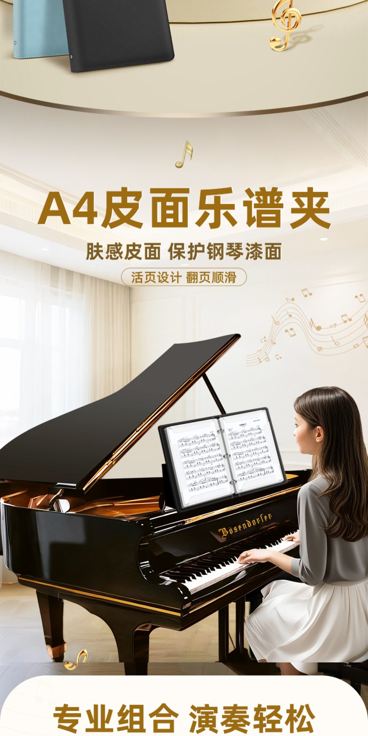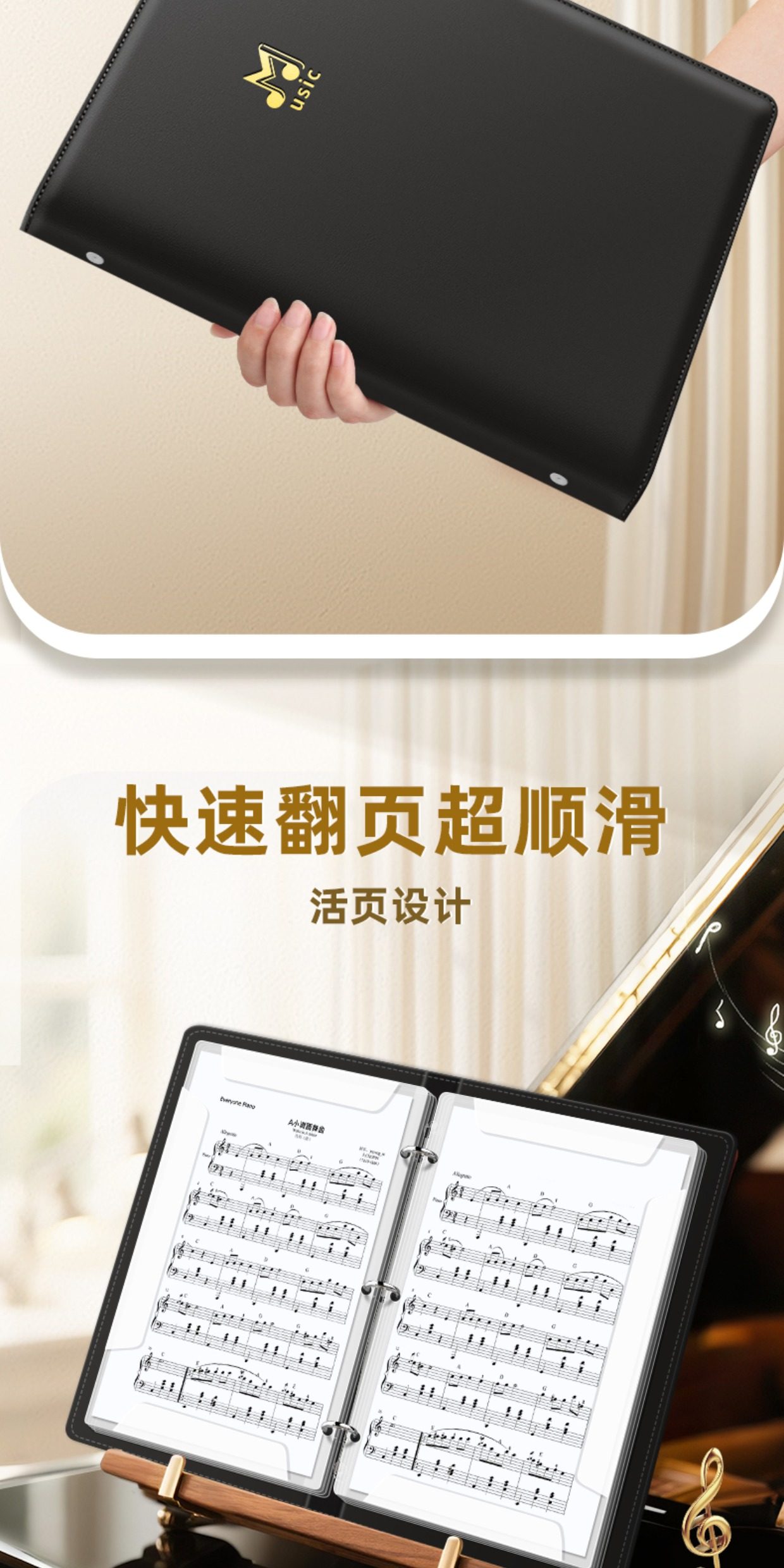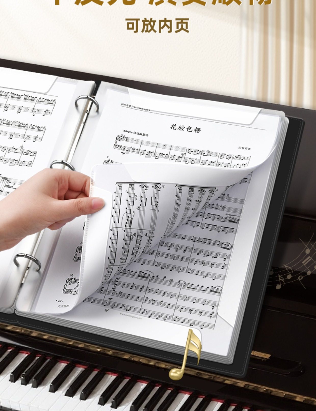 Sheet Music Folder for Piano, A4 Leather Music Folder, Expandable Loose-Leaf Music Folder, Non-Reflective, Editable, Transparent Insert Pages, Music Storage Folder, Document Organizer, Choir Sheet Music