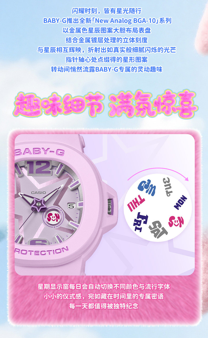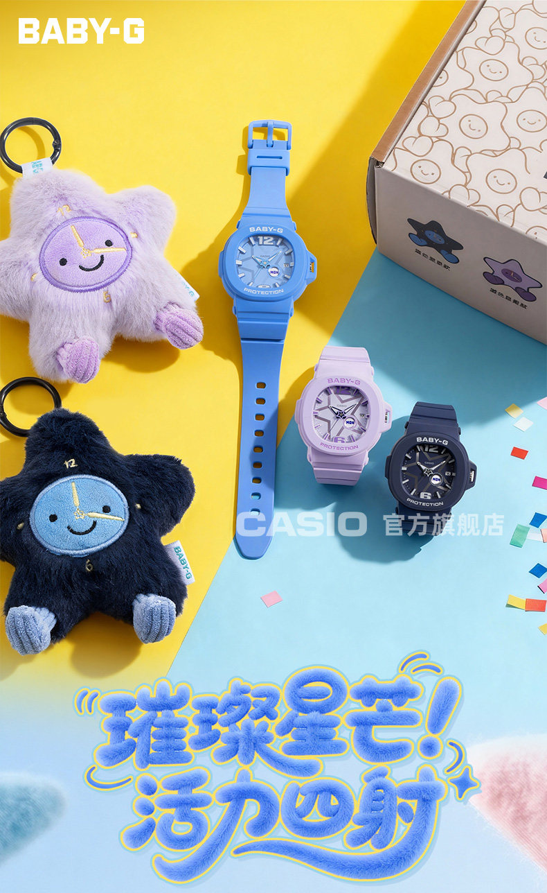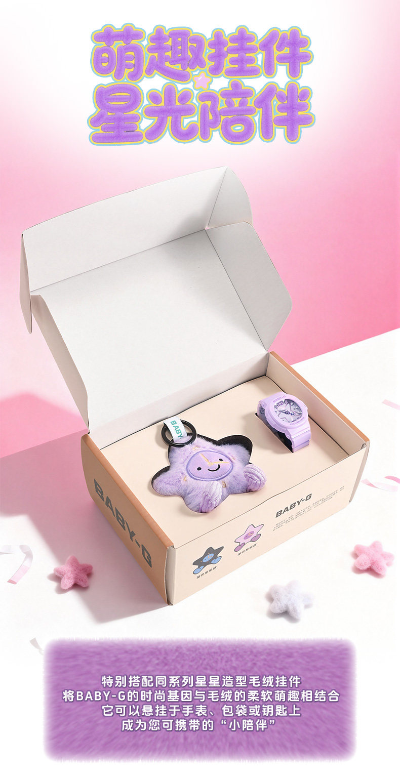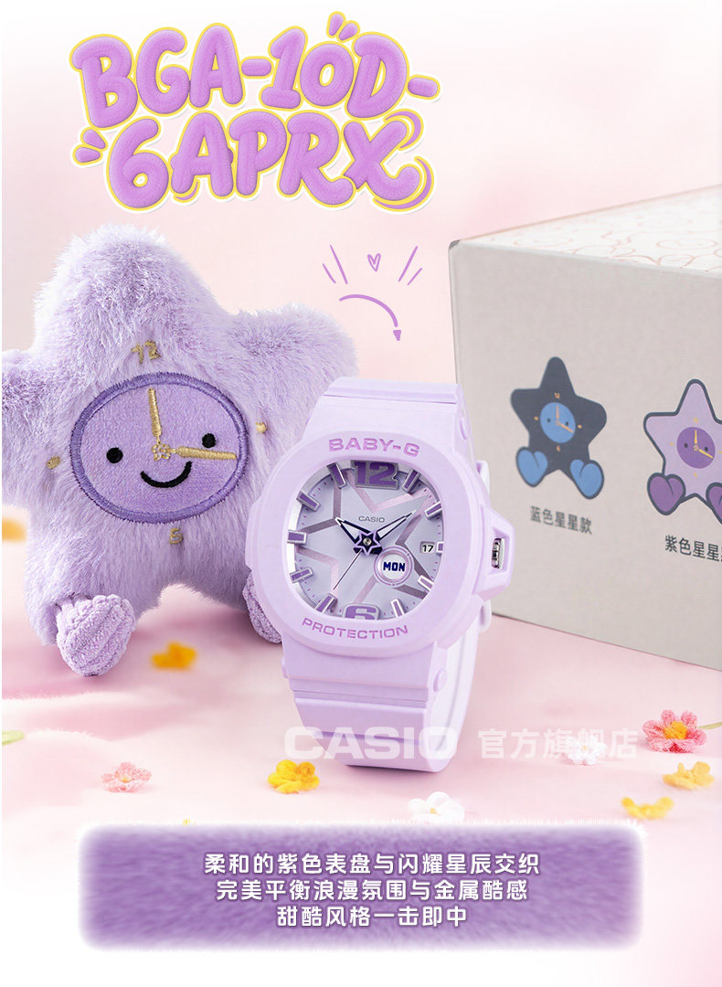 Casio Flagship Store Bga-10D Starry Time Colorful Watch Women's Star Plush Pendant Gift Box Baby-G