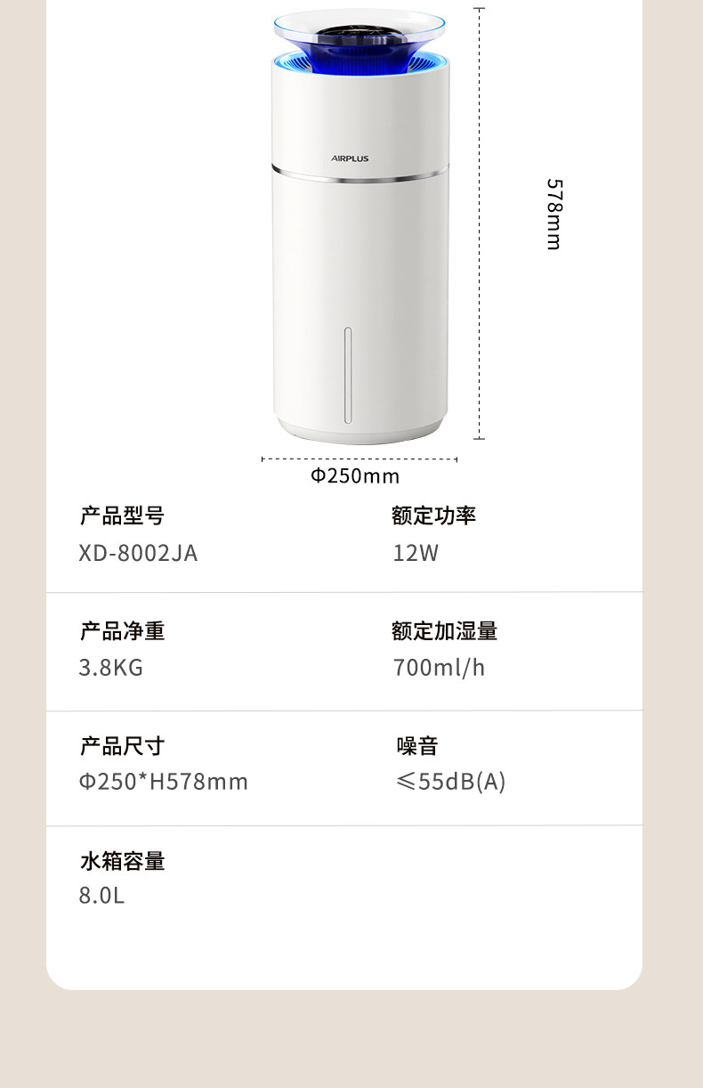 Airplus Fog-Free Humidifier for Home Bedroom, Silent Air Conditioning Room Air Indoor Humidification, Sterilization, Soft Sound, Suitable for Mothers and Babies