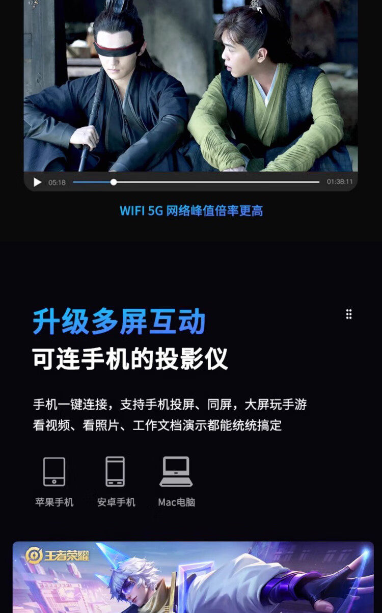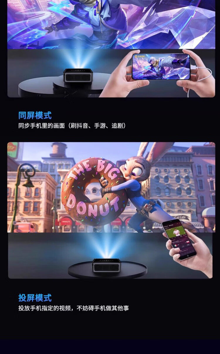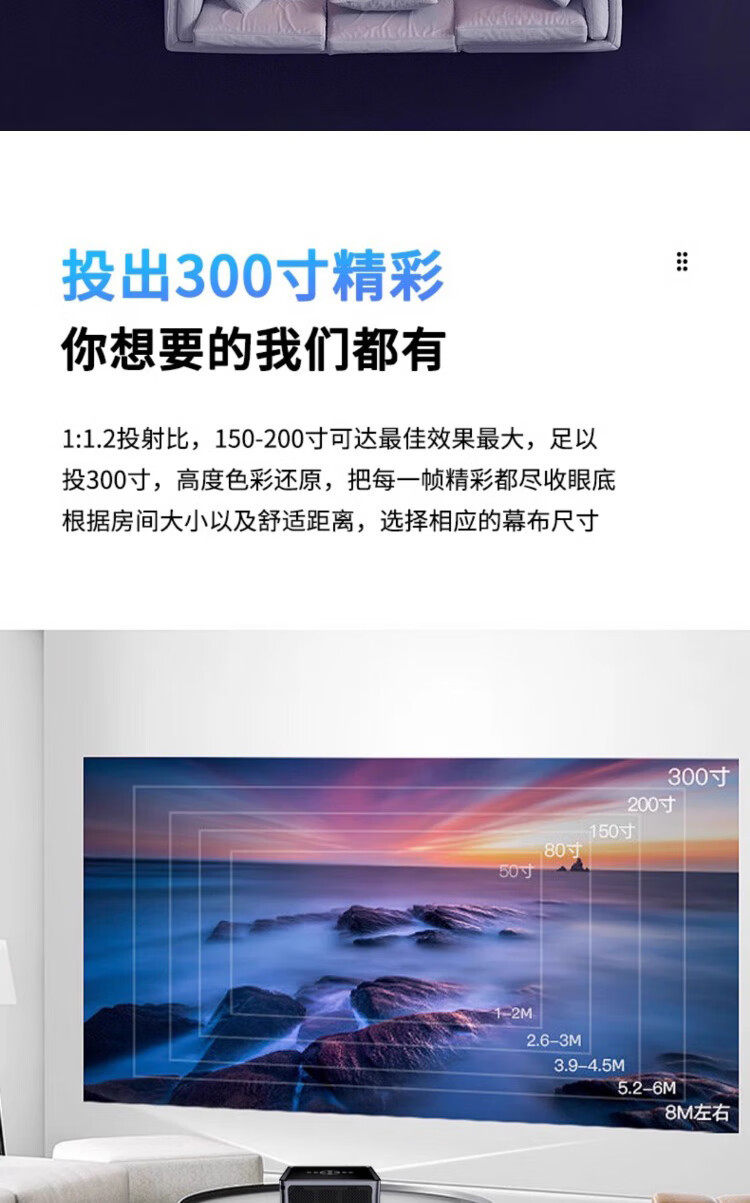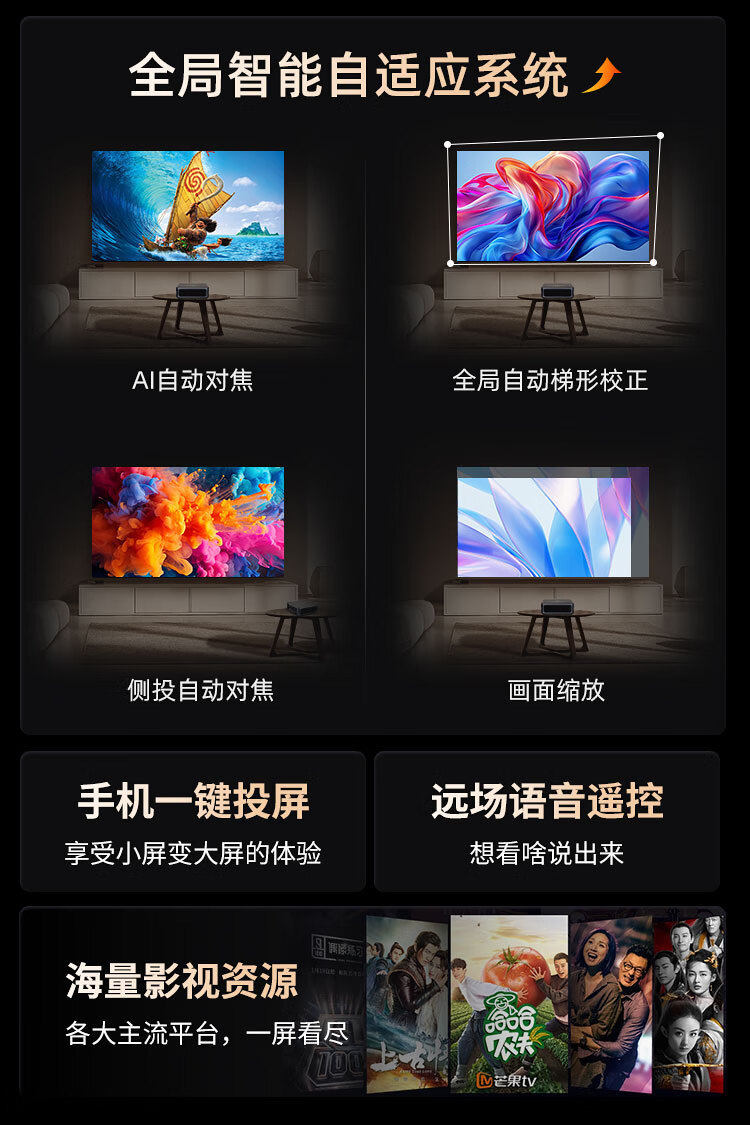 Overseas Version of Home-Use Ultra-High-Definition 1080P Daytime Direct Projection Autofocus Home Theater Office Projector That Can Be Connected to Mobile Phones for Wireless Screen Projection with 8K Decoding International Version