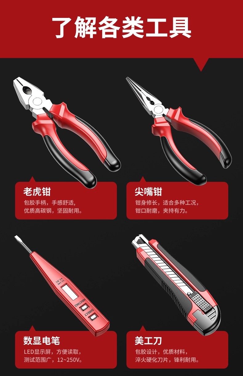 Household Tool Box Set, Multi-Functional Electric Drill, Electrician, Carpenter, Repair Tool Set, Universal Complete Set