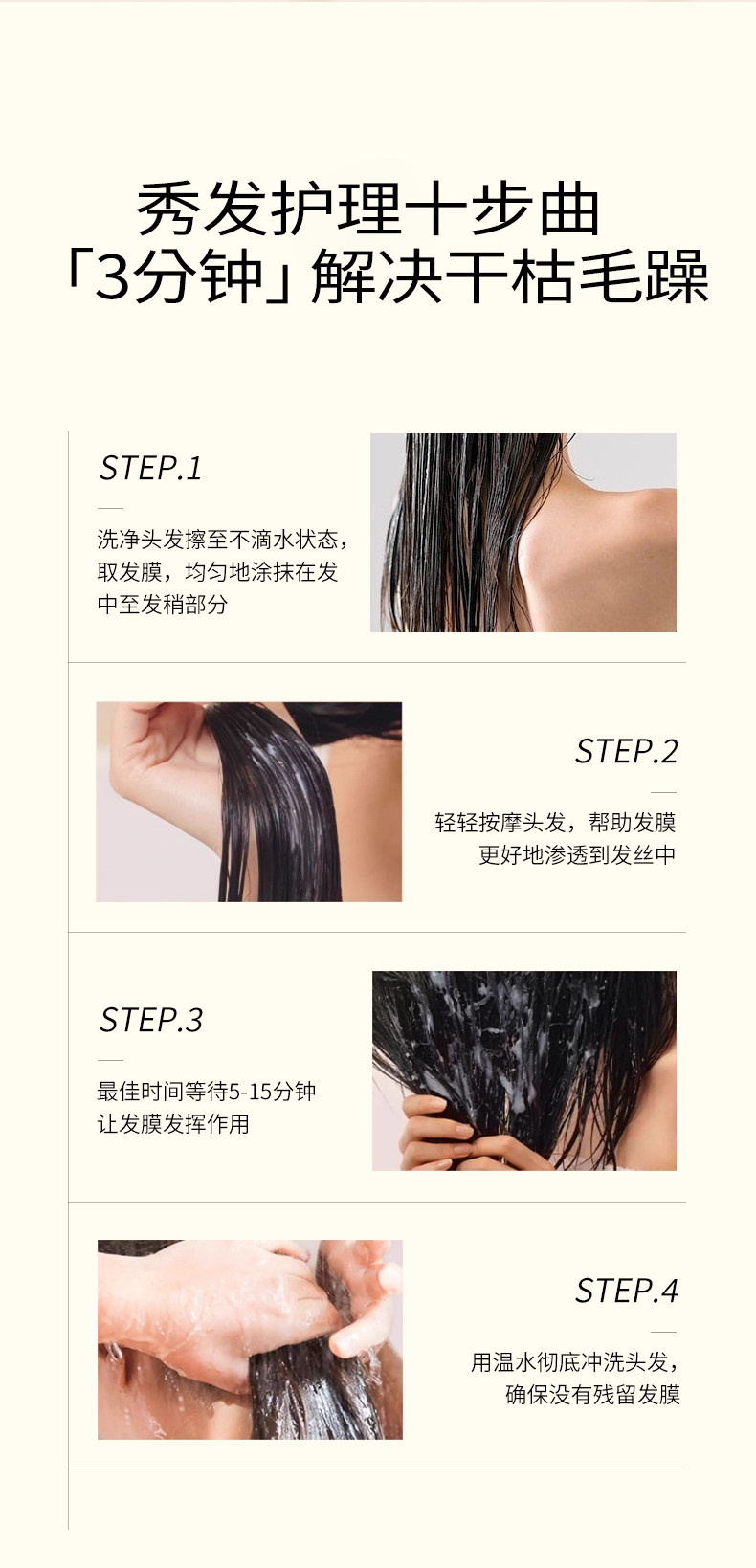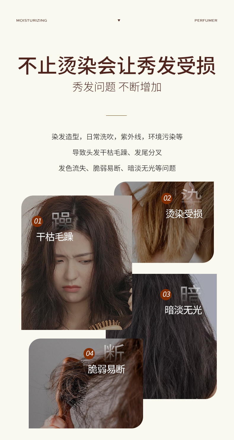 | Efficacy | Damaged Hair Care after Dyeing and Perming,Repair,Improve Frizz,Strong and Anti-Hair Breakage,Smooth |
