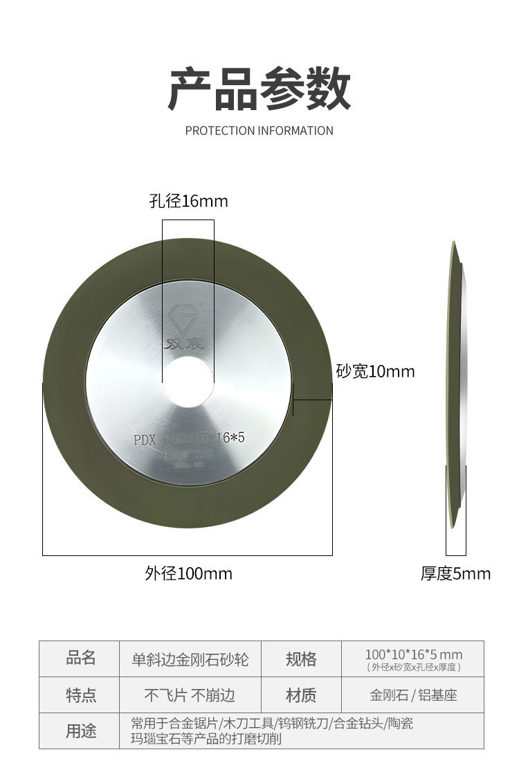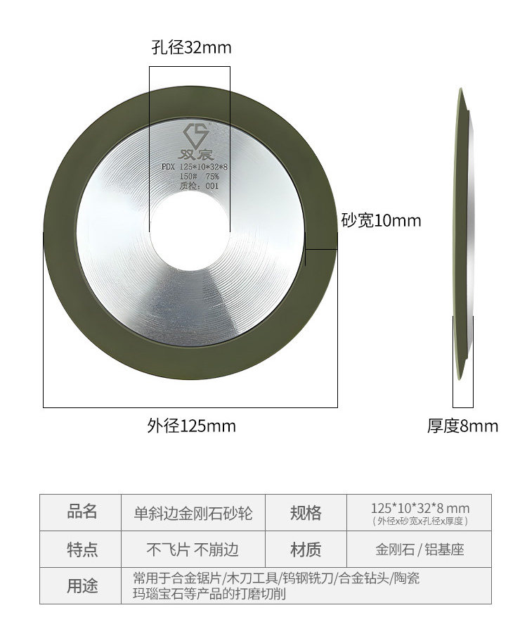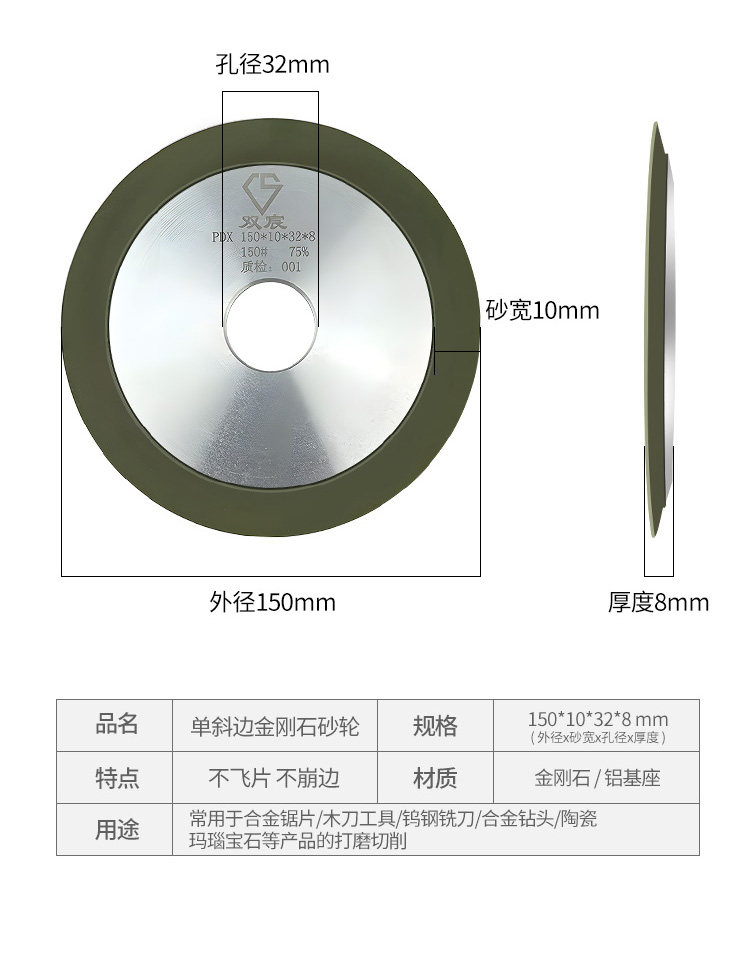 | Color Classification | Single Bevel Grinding Wheel 100*16 Holes,Single Bevel Grinding Wheel 100*20 Holes,Single Bevel Grinding Wheel 125*25 Holes,Single Bevel Grinding Wheel 125*32 Holes,Single Bevel Grinding Wheel 150*25 Holes,Single Bevel Grinding Wheel 150*32 Holes |