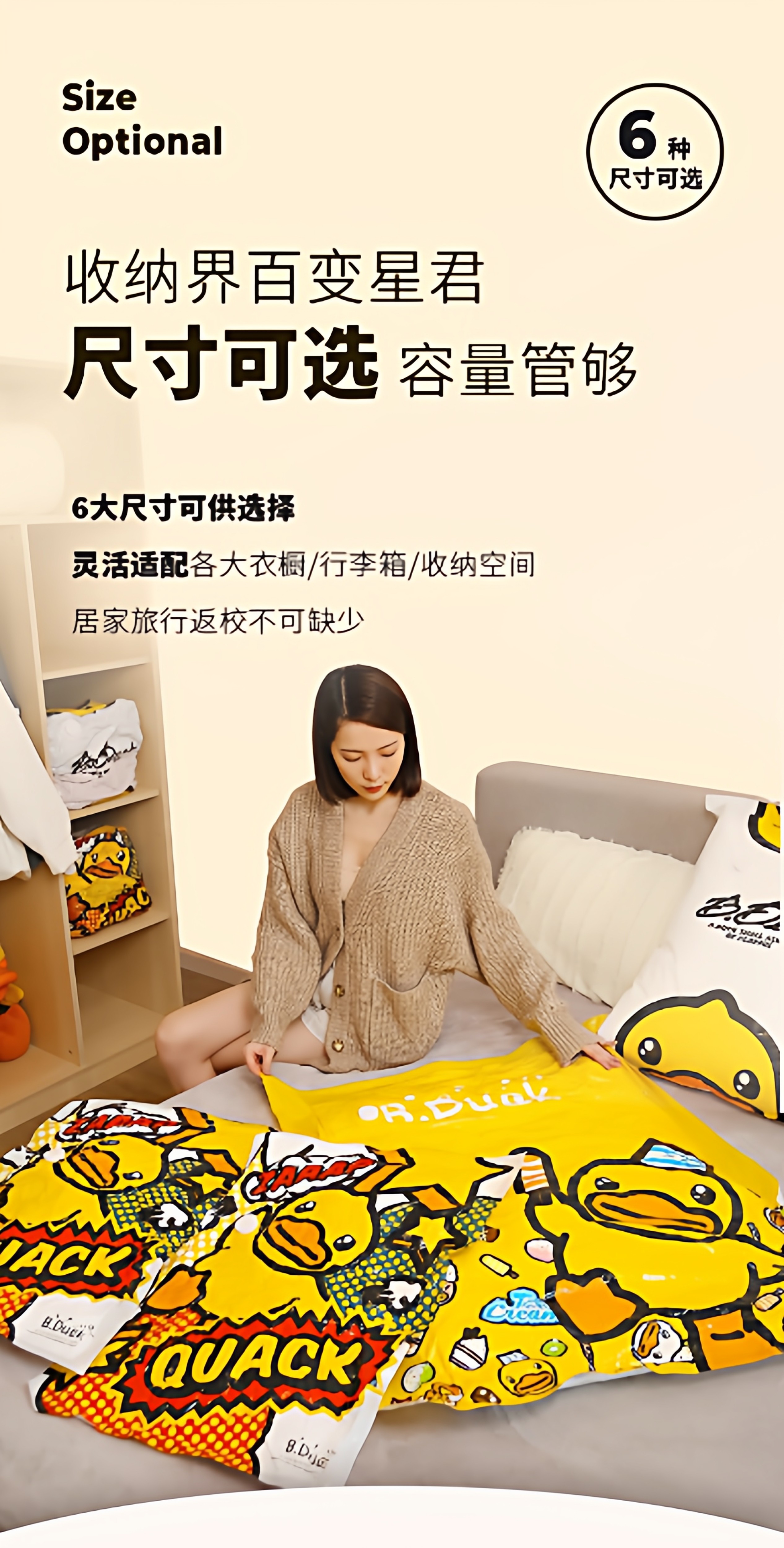 Storage Doctor Little Yellow Duck Vacuum Compression Bag for Clothes and Quilts, Special Bag, Thickened and Durable, Travel Clothes and Coat Bag