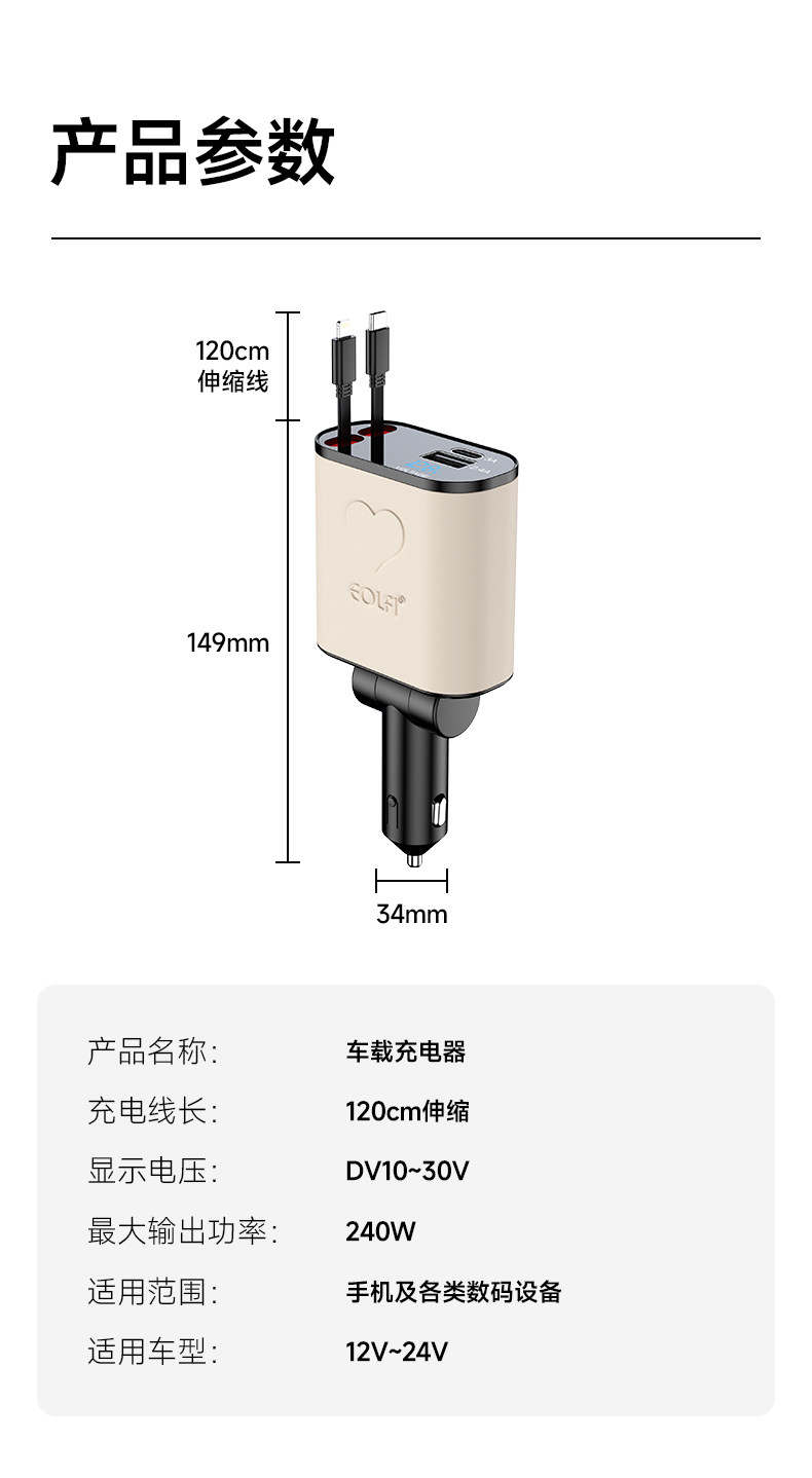 | Applicable Equipment Type | Other Vehicle Electronic Equipment,Digital Equipment,Multi-Device Hybrid Charging,Tablet Pc,Mobile Phone,Driving Recorder |