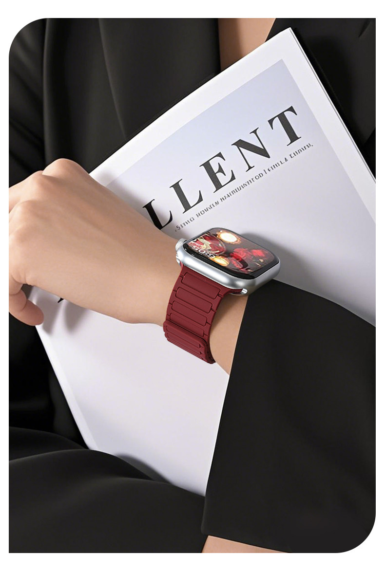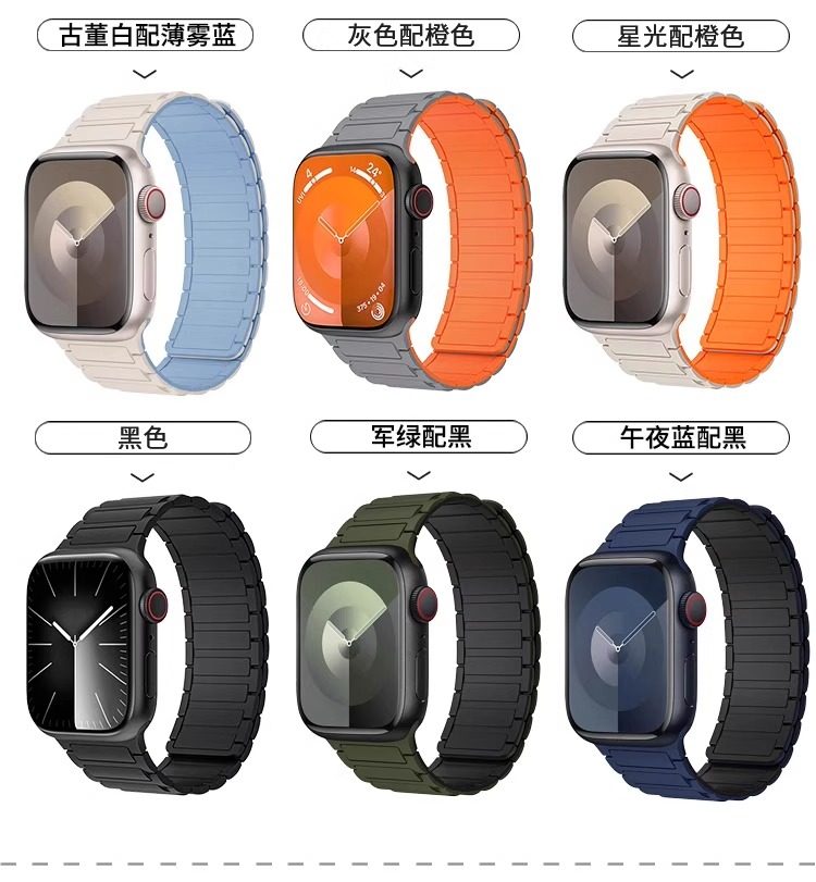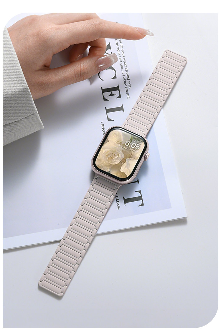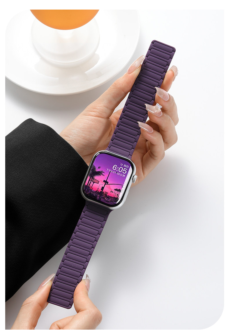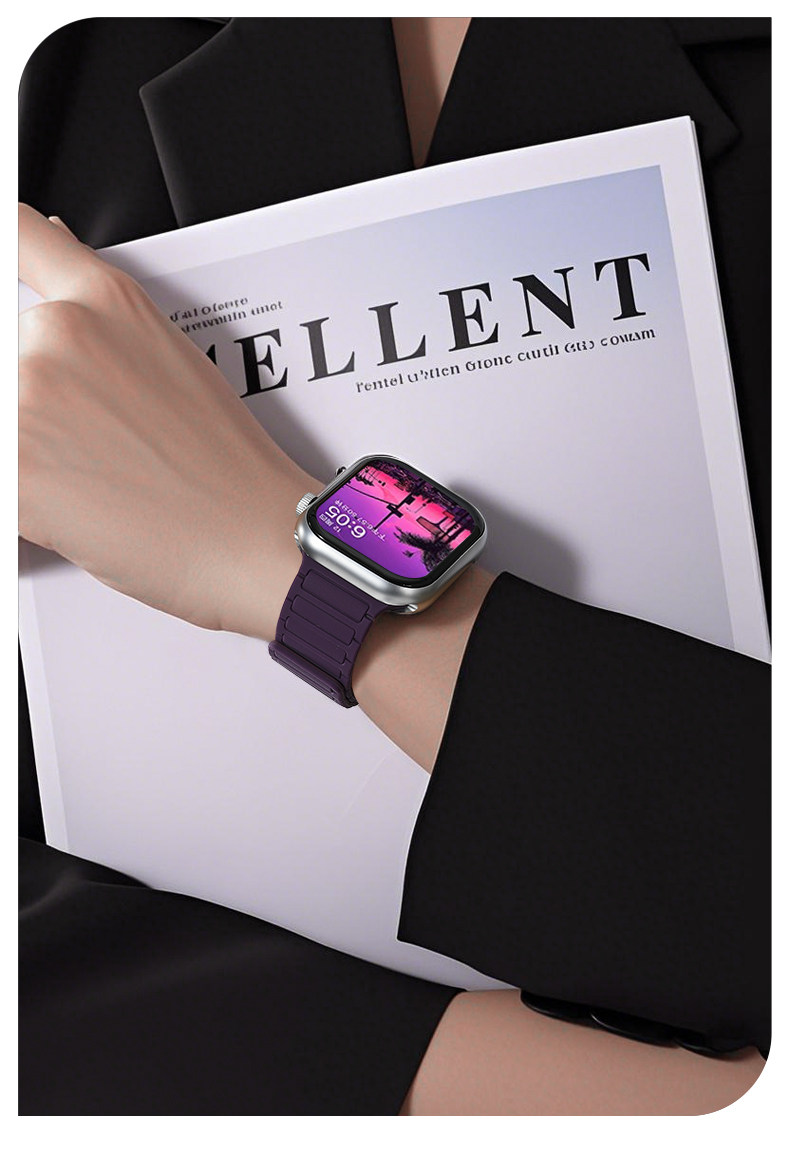 | Model | Imported Liquid Silicone Watch Band Compatible with Apple Watch Series 11/10, Featuring Magnetic Attachment. |