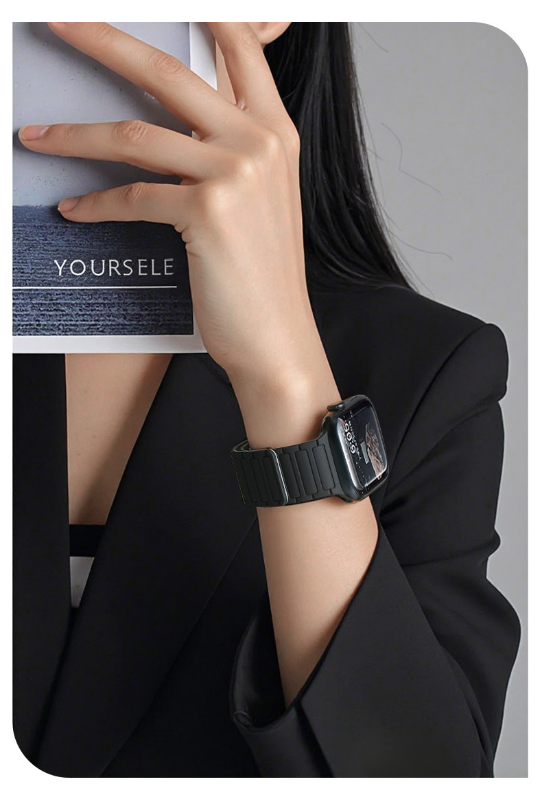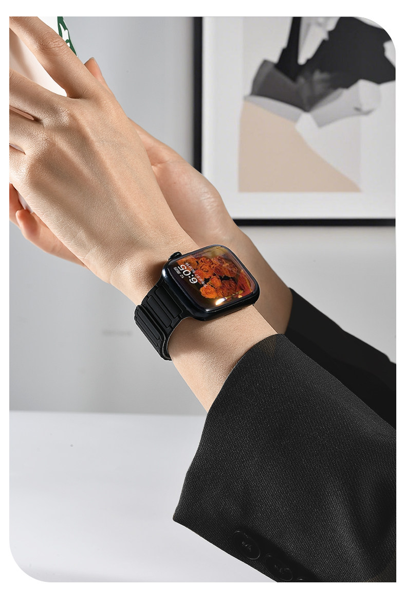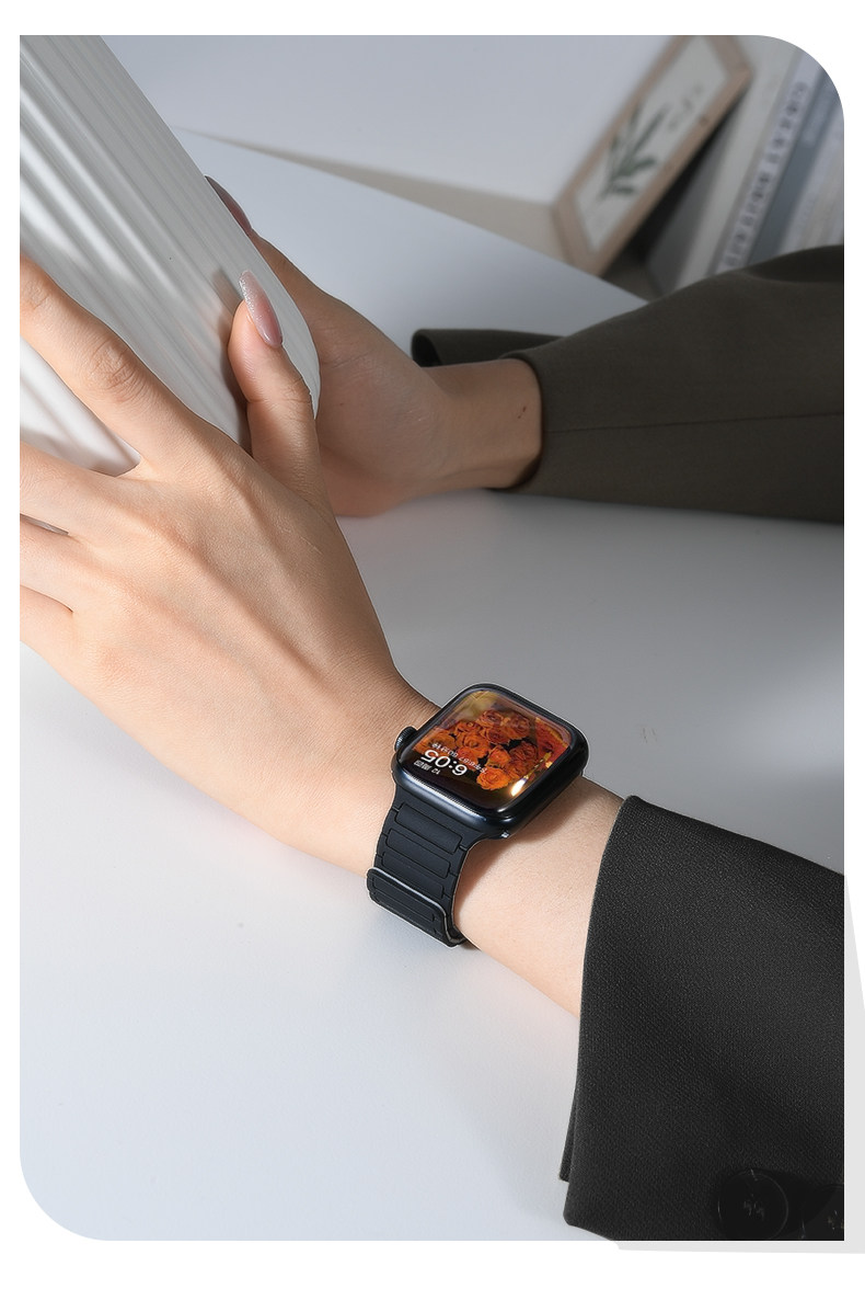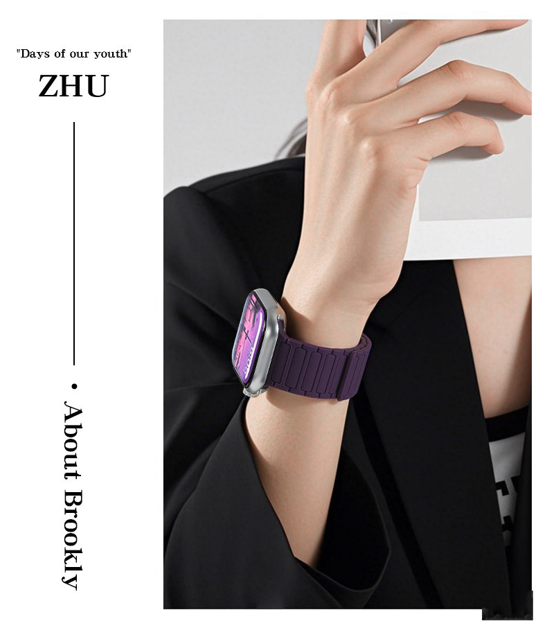 | Model | Imported Liquid Silicone Watch Band Compatible with Apple Watch Series 11/10, Featuring Magnetic Attachment. |