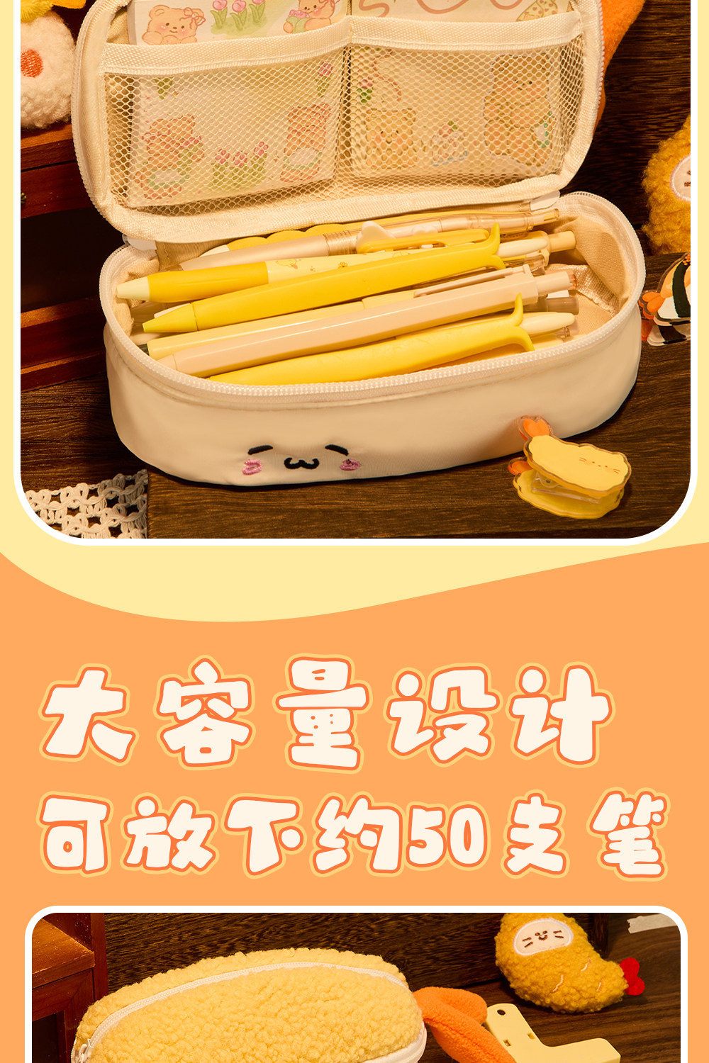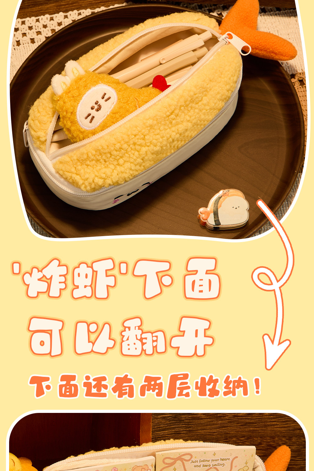 Cute Fried Shrimp Pencil Case, High Aesthetic Value, Ins-Style Student 2025 New Model Stationery Box, Large Capacity, Simple and Unique Pencil Case