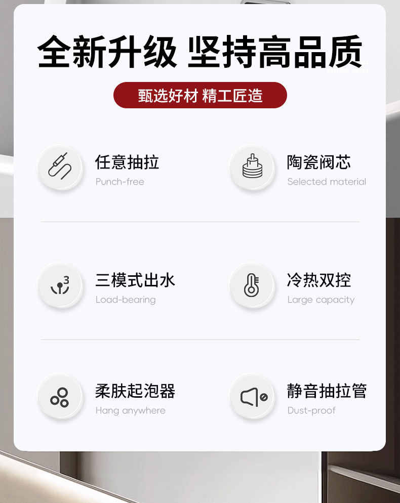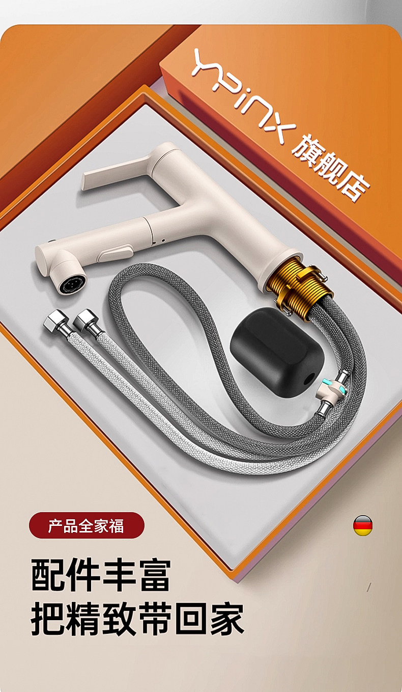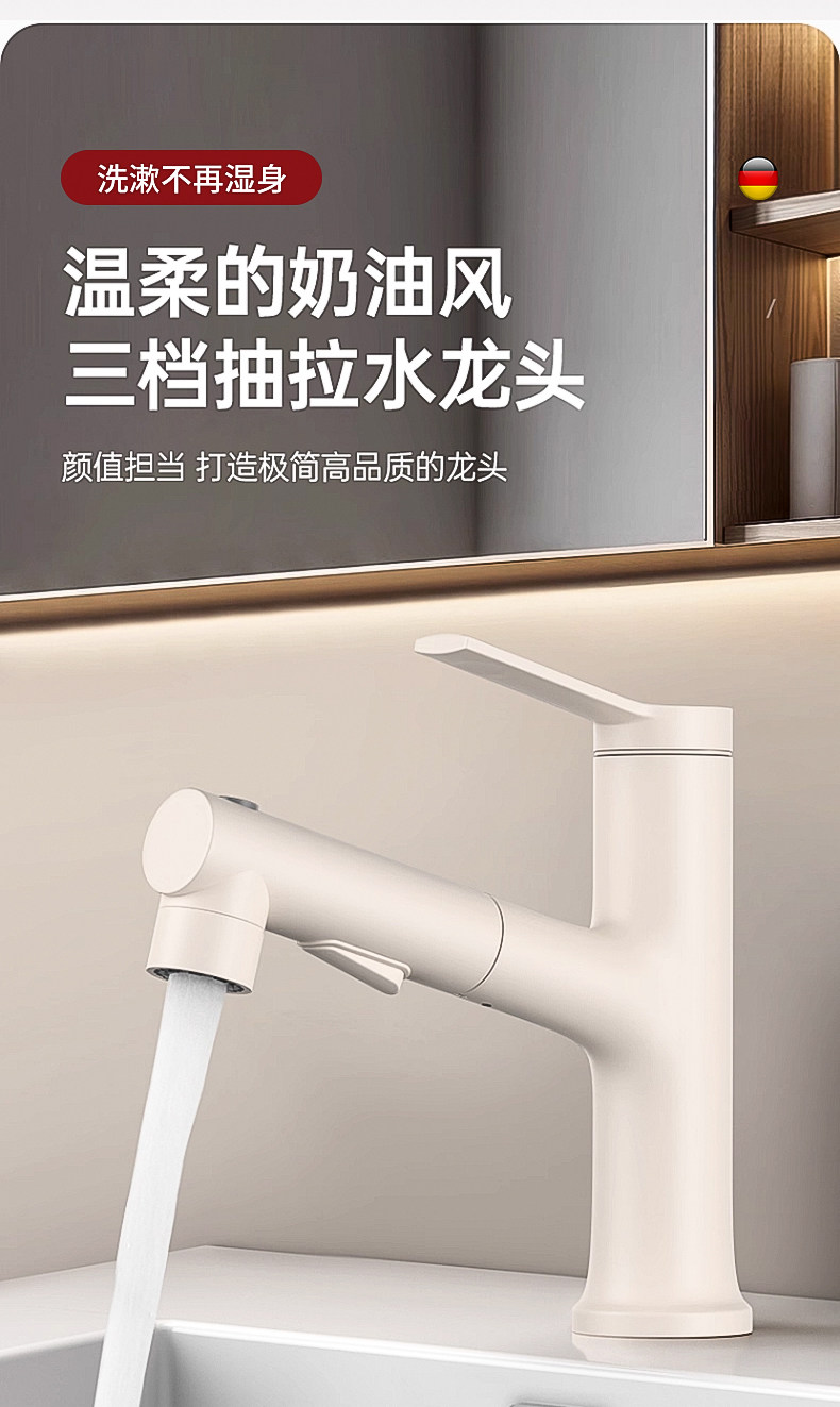 Copper Washbasin Faucet with Pull-Out Spout, Dual-Use for Hot and Cold Water, Suitable for Bathroom Vanity Countertop, Household Use