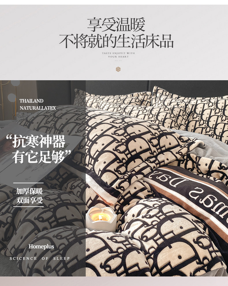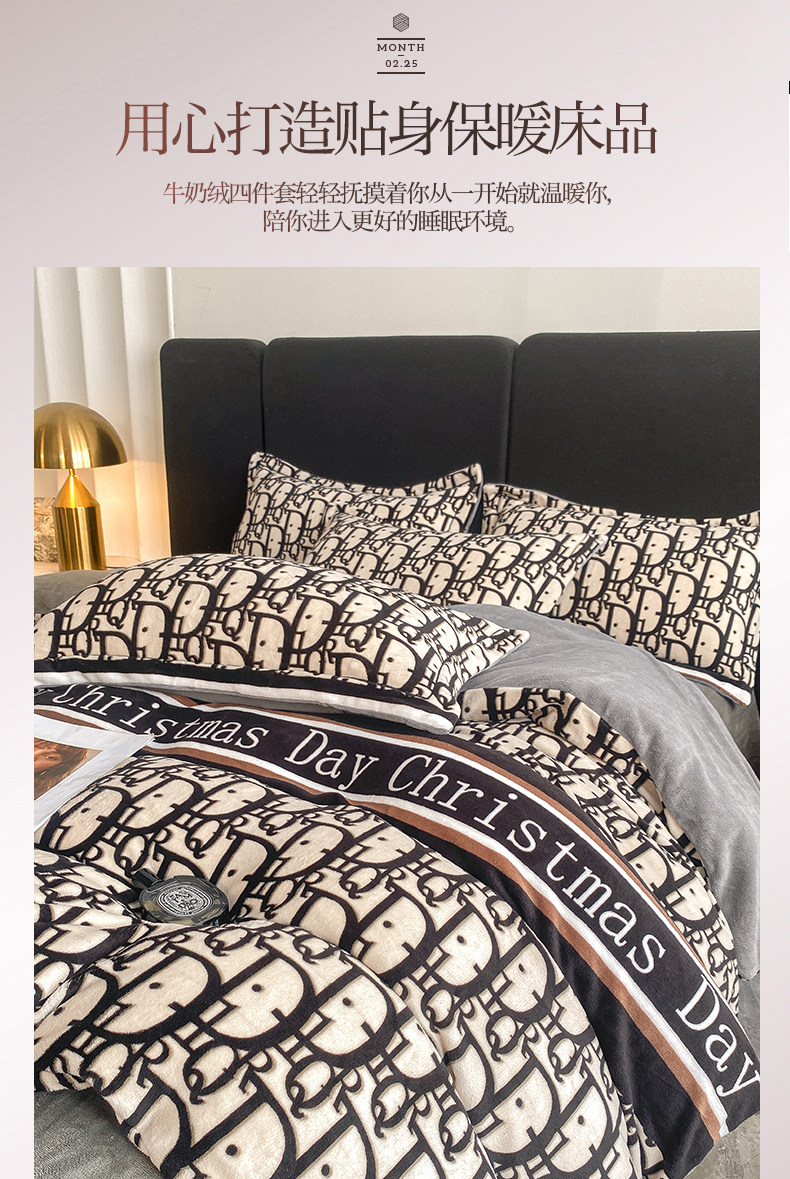 Winter Fleece Four-Piece Bedding Set, Milk Velvet 2025 New Double-Sided Plush Duvet Cover, Coral Fleece Bed Sheet and Fitted Sheet