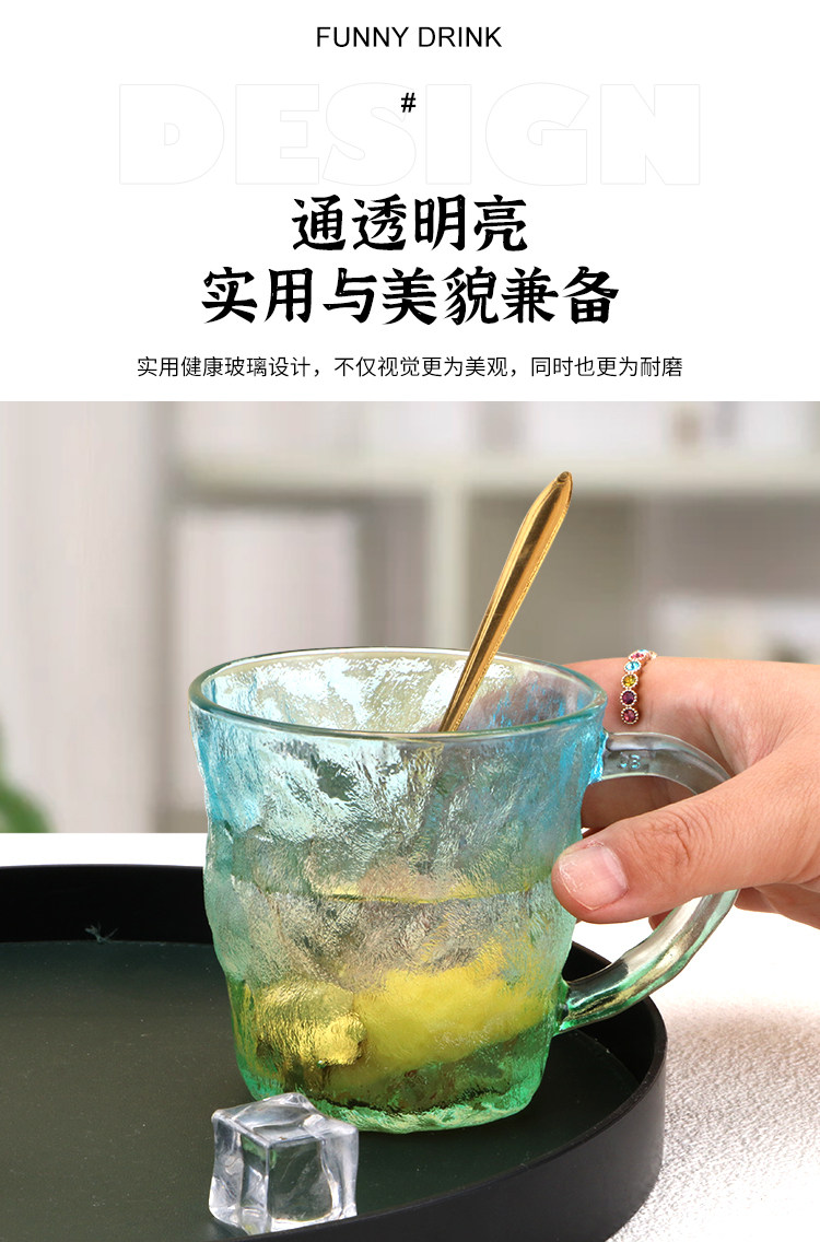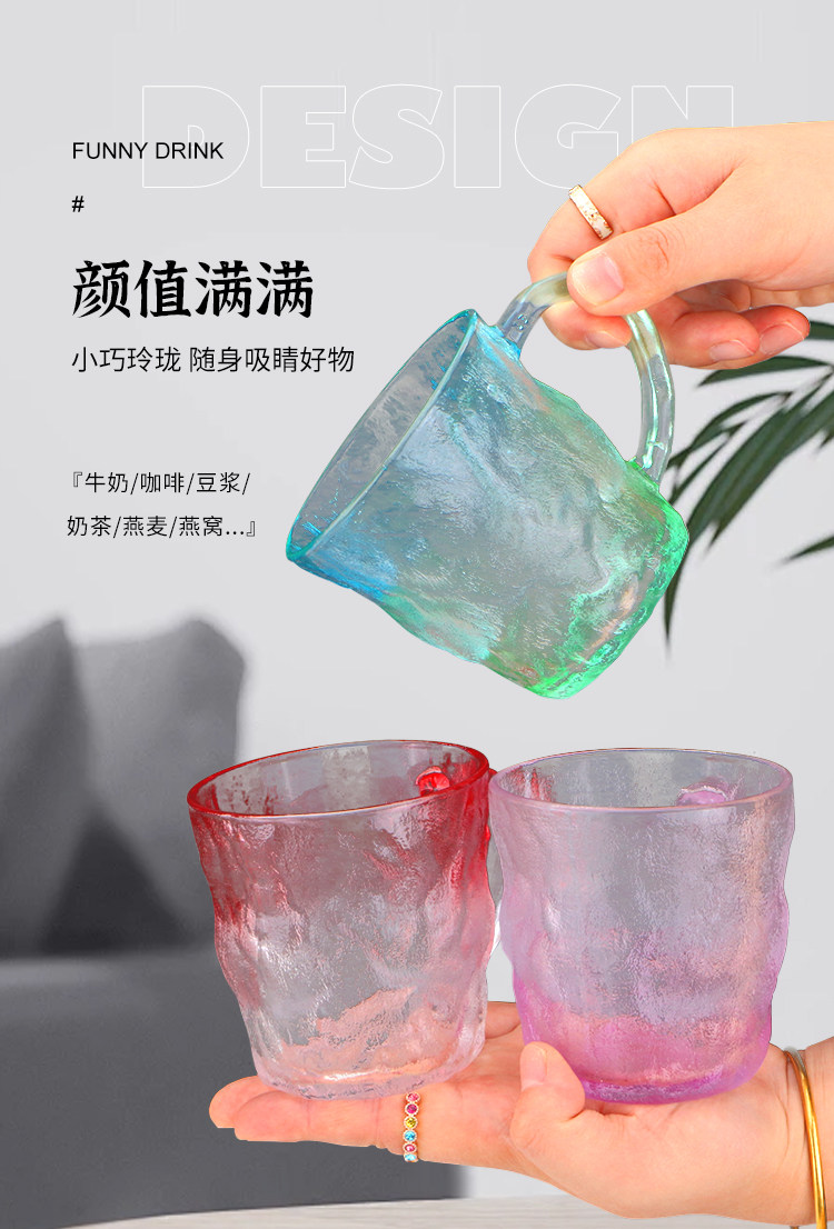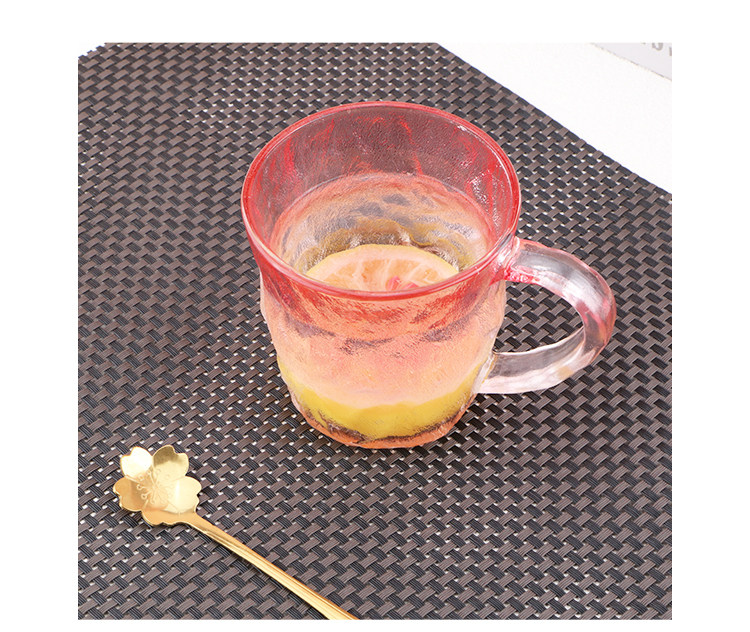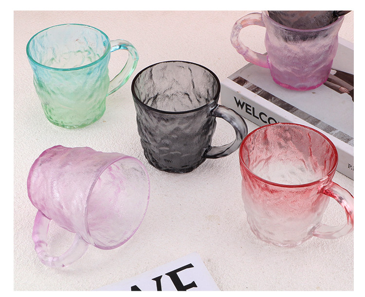 Japanese-Style Glacier Cup with Handle, Colorful Frosted Glass Cup, Trendy High-Appearance Water Cup, Juice Cup, Beer Cup