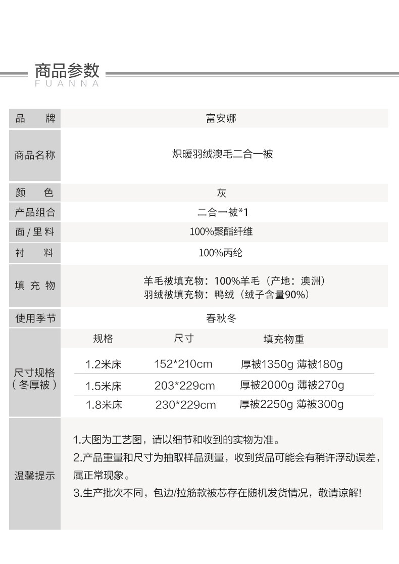 Fuanna down Quilt Imported Wool Quilt Two-In-One Quilt for All Seasons Spring and Autumn Quilt Core Dormitory Quilt