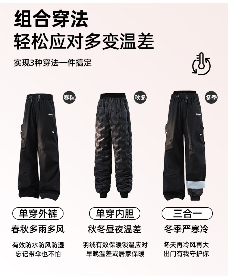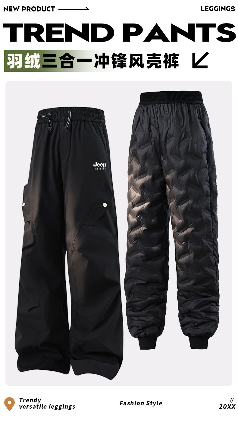 Jeep Softshell down Pants for Women, Winter Outdoor Three-In-One Waterproof Mountaineering Workwear, Cold-Proof Sports Ski Pants