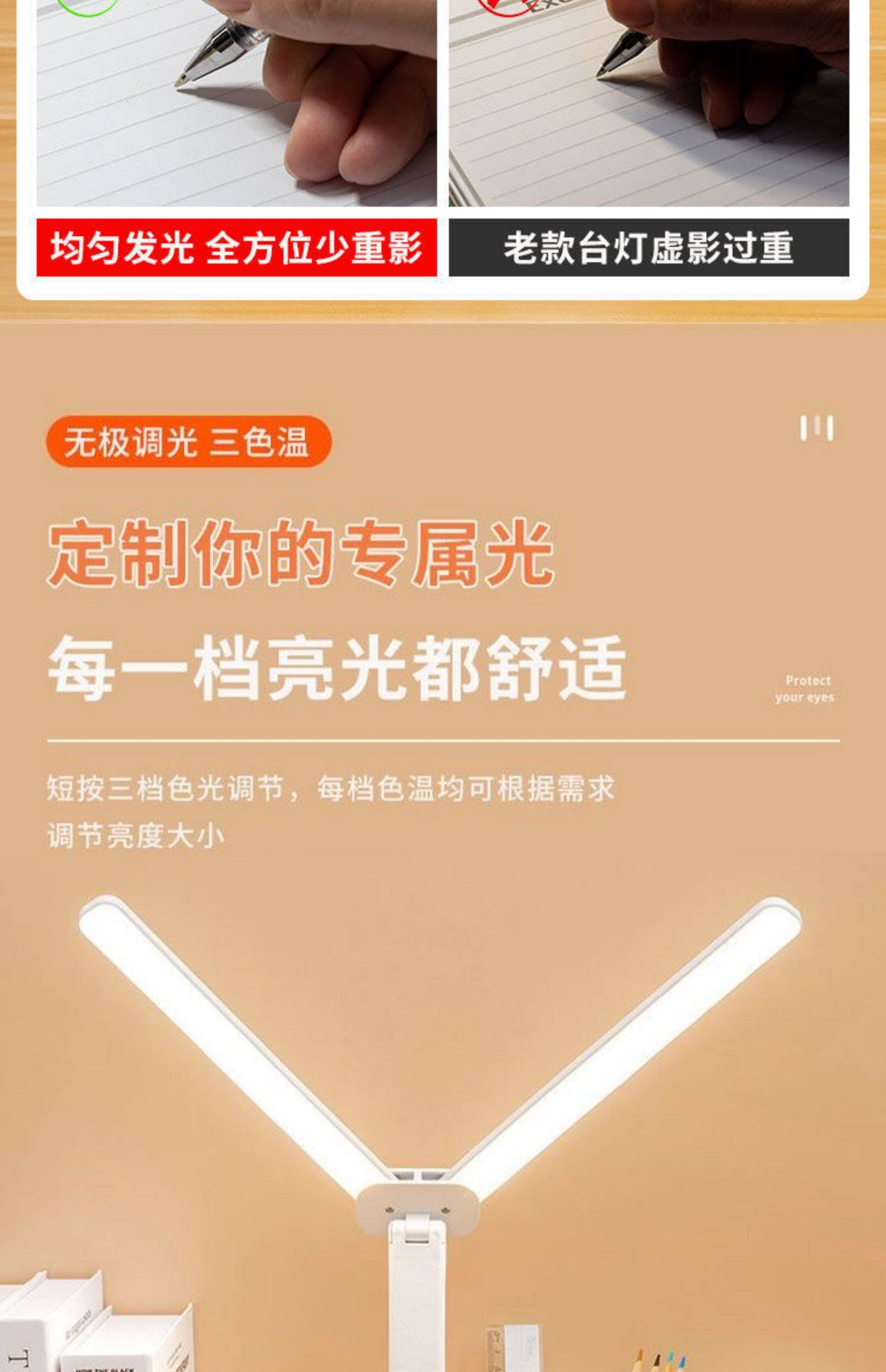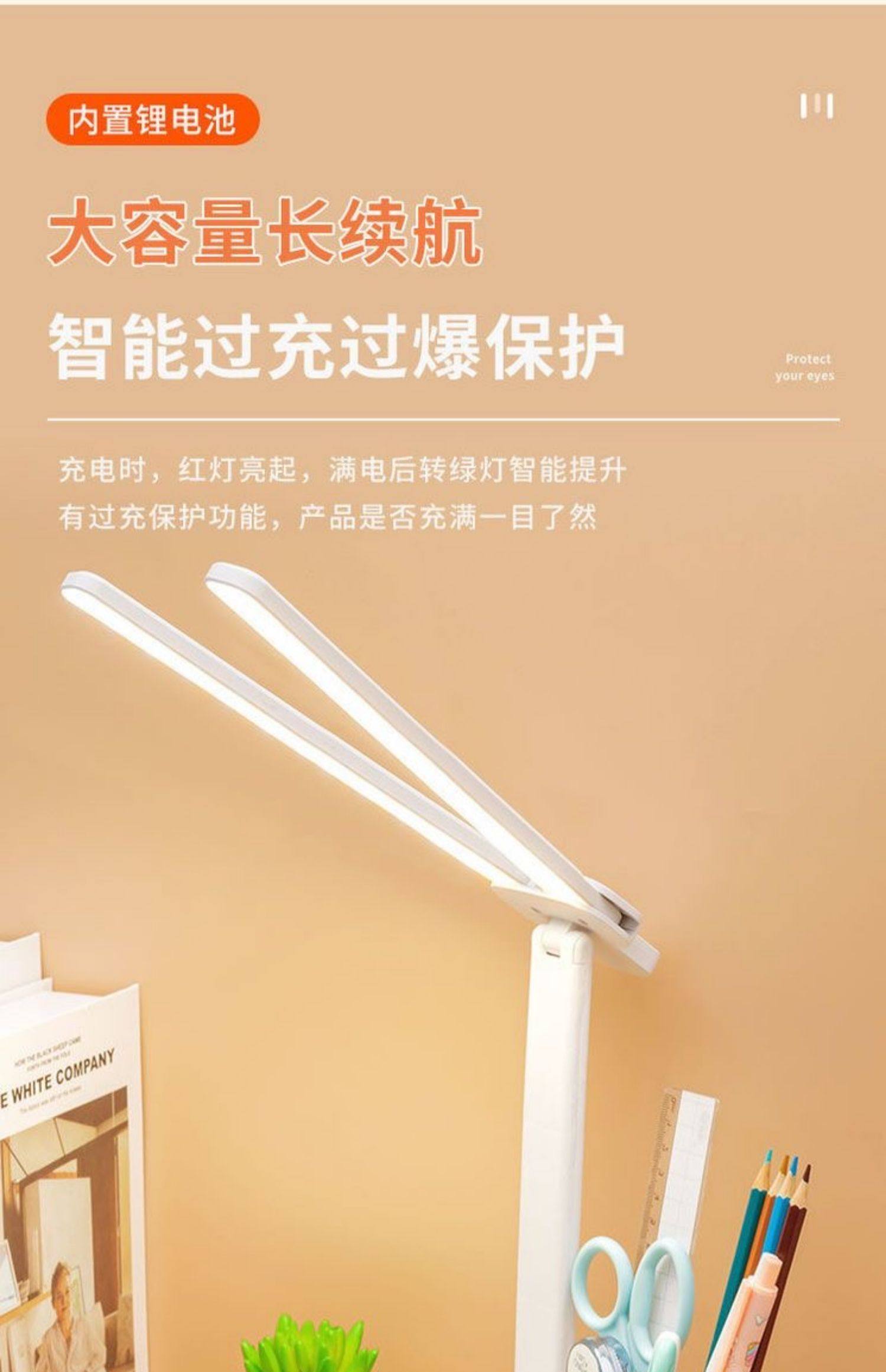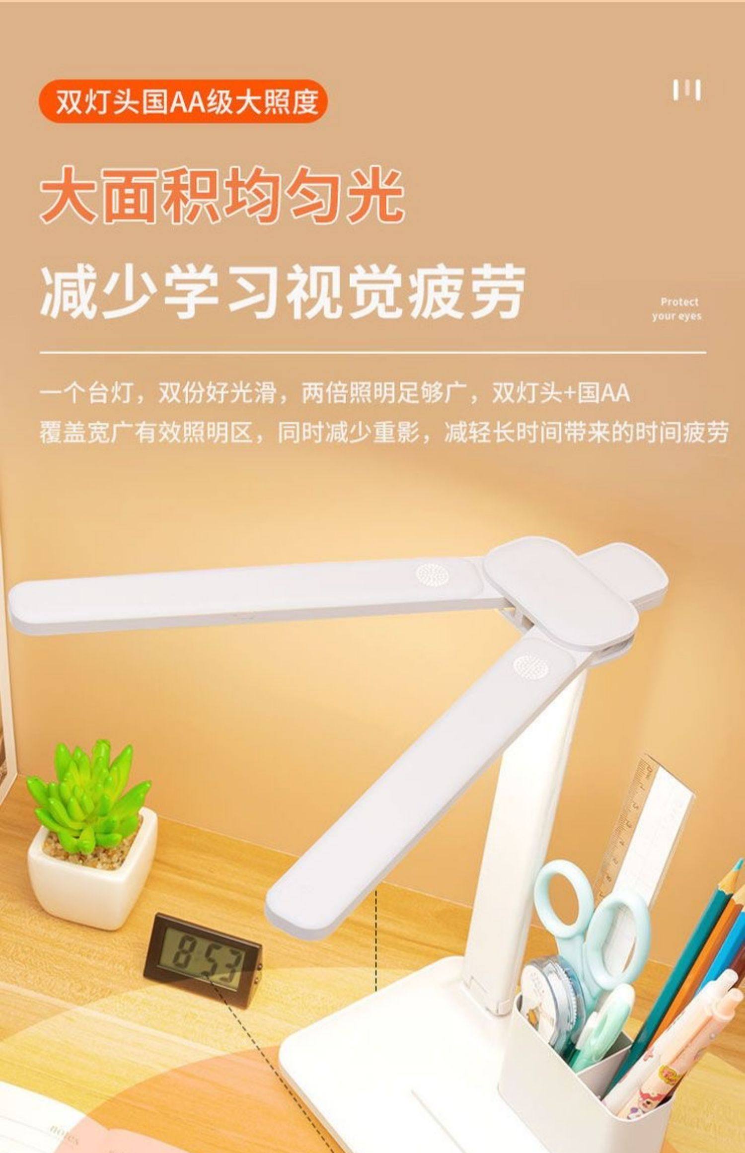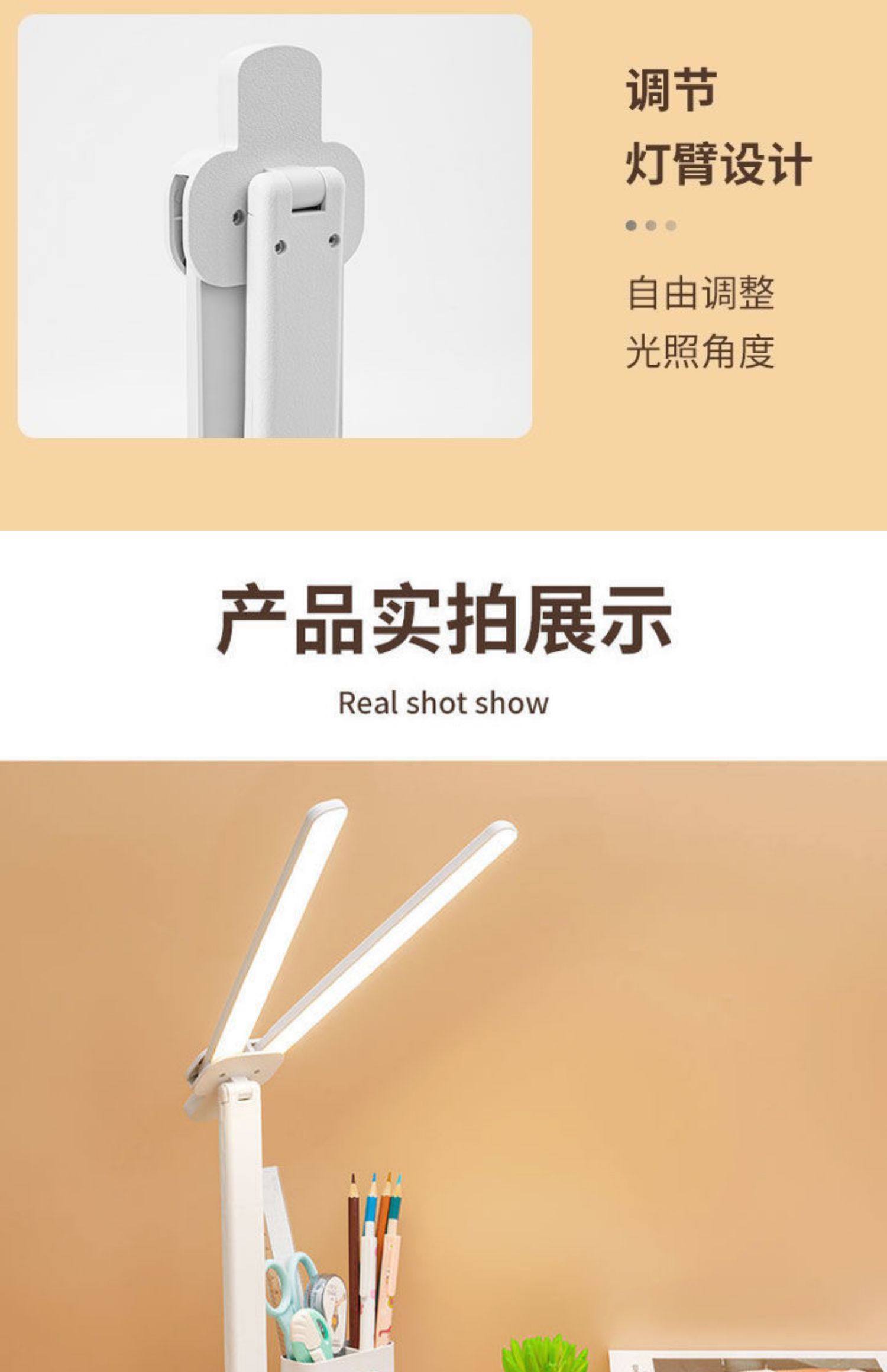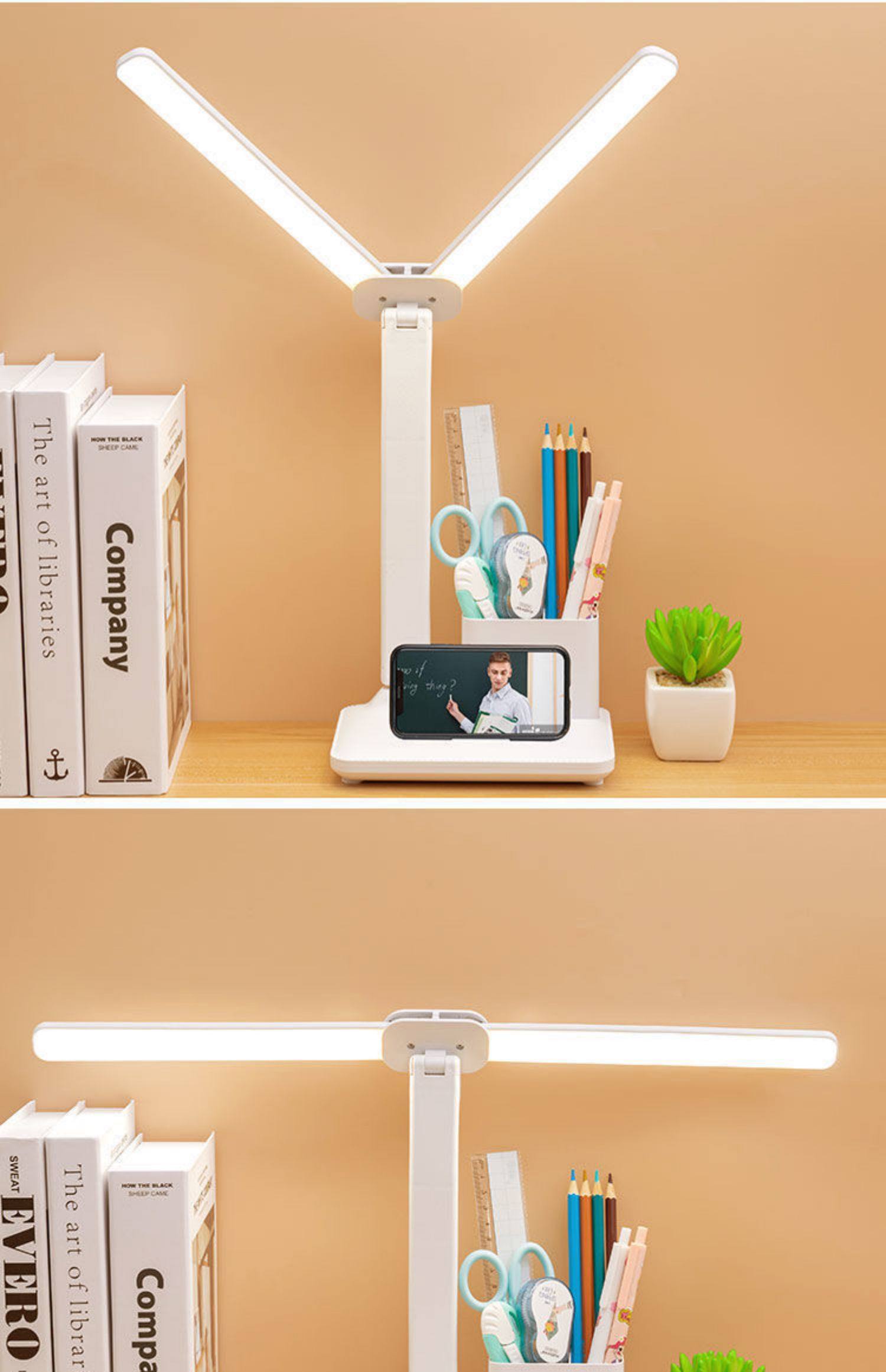 Double-Headed Desk Lamp for Studying, Special Eye Protection Desk Reading Lamp for Students to Do Homework, Kidsren's Rechargeable Bedside Lamp to Prevent Myopia