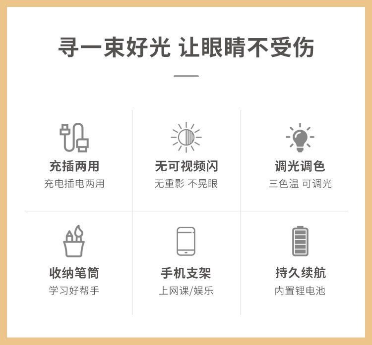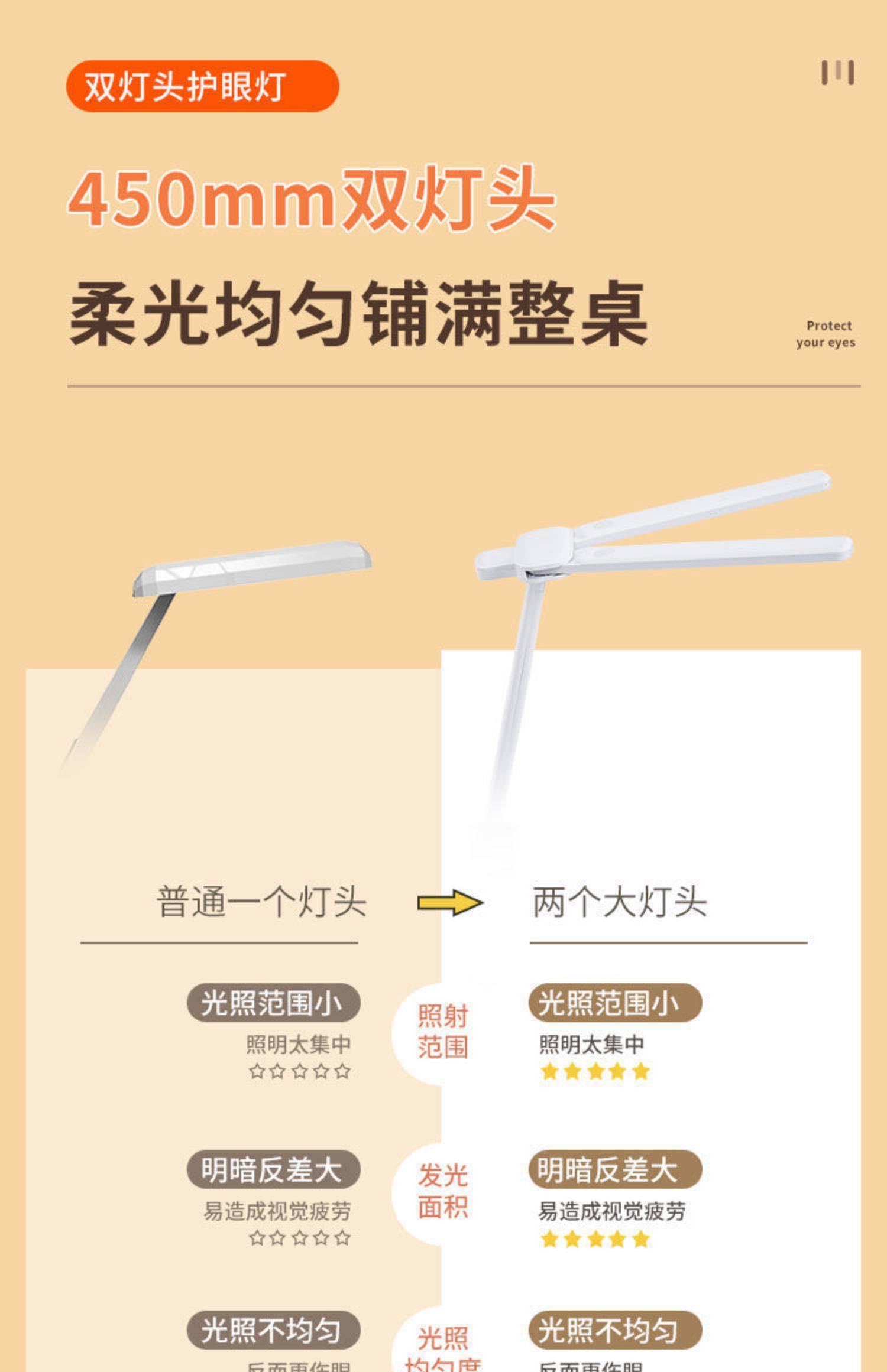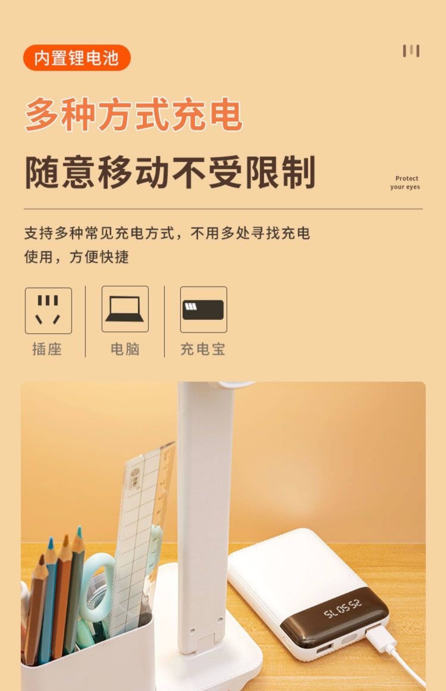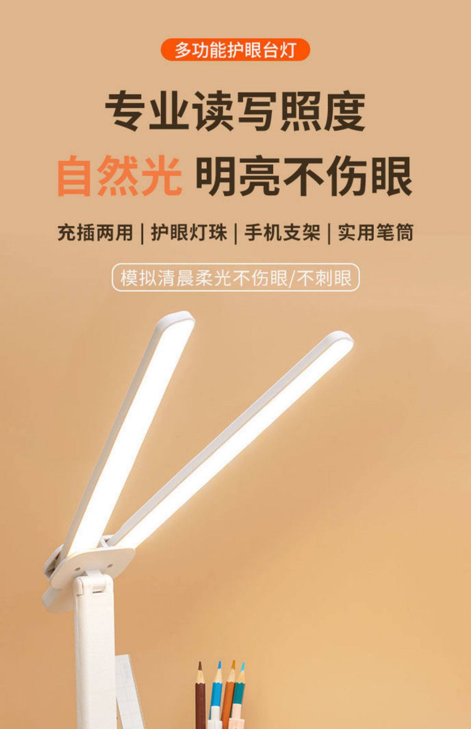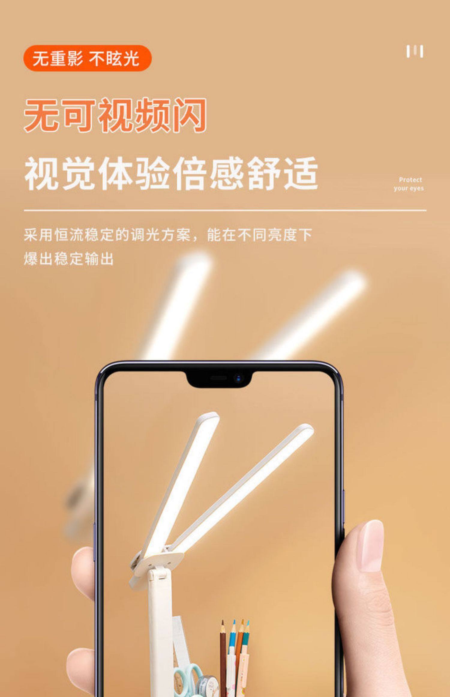 Double-Headed Desk Lamp for Studying, Special Eye Protection Desk Reading Lamp for Students to Do Homework, Kidsren's Rechargeable Bedside Lamp to Prevent Myopia