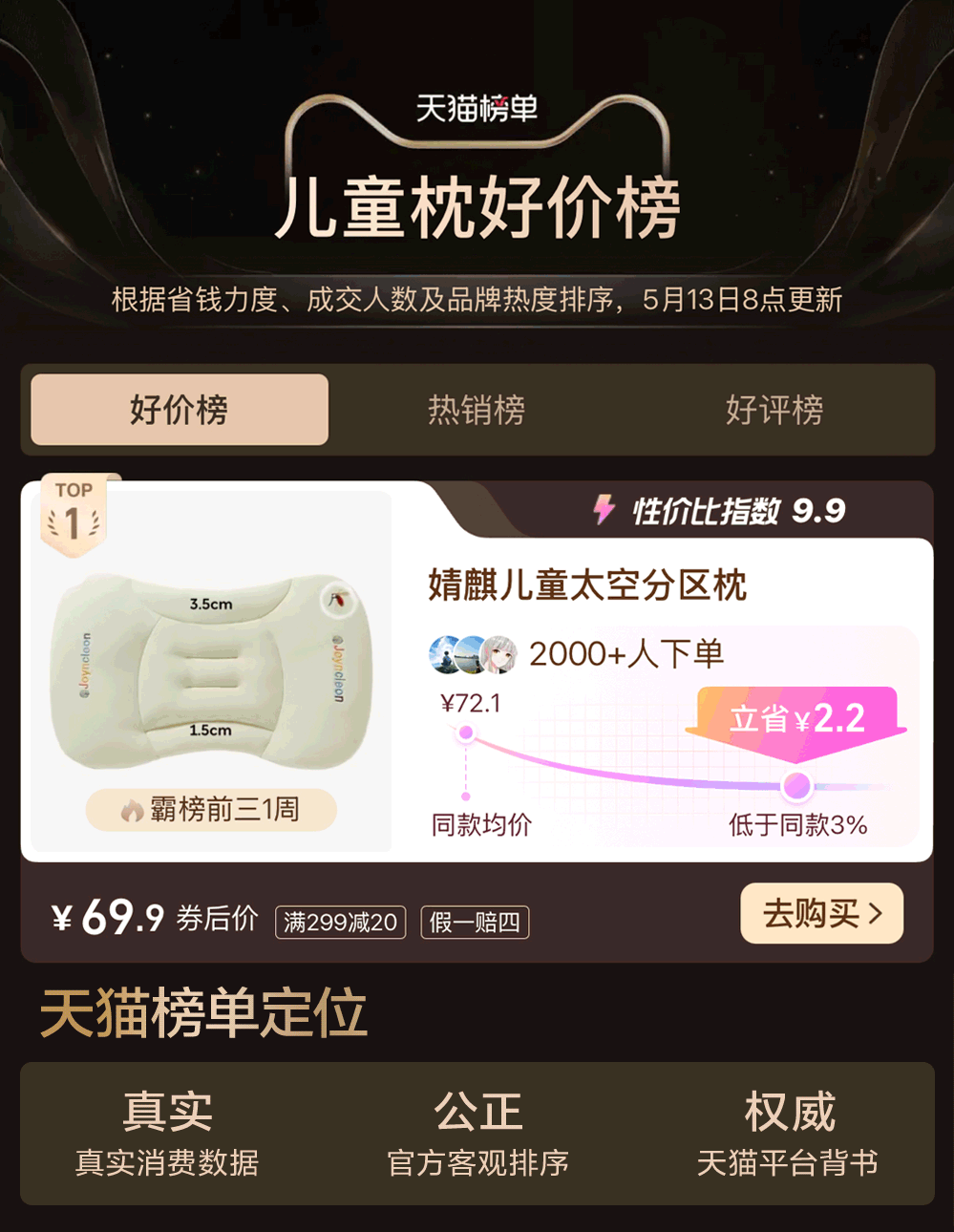 [Hot-Selling Space Partition Pillow] Jingqi Children's Partition Pillow, Neck Protection Pillow Specifically for Infants and Toddlers Aged 6 Months to 8 Years