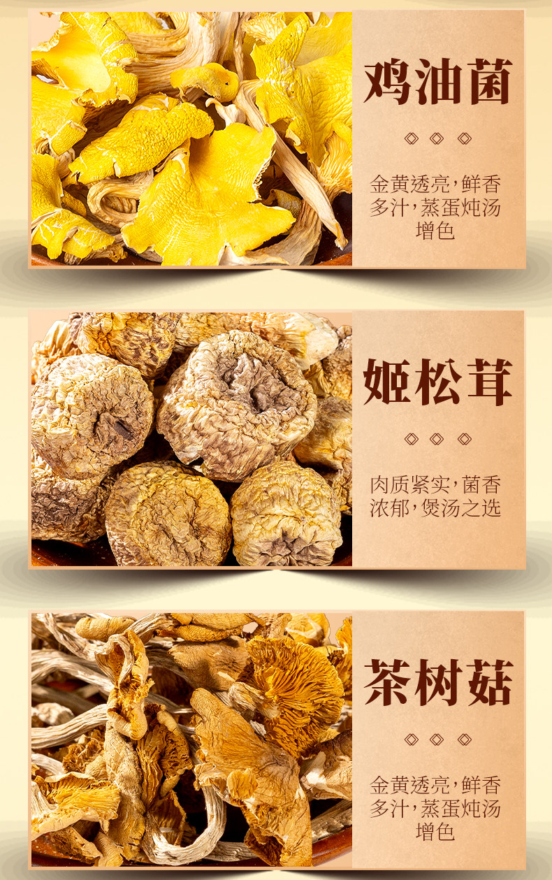 | Taste | 330g (1 Box) Mountain and Wild Mushroom Feast Gift Box,660g (2 Boxes) Mountain Mushroom Feast Mushroom Gift Box |