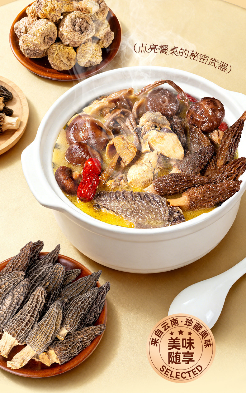 Legend of Fungi: Yunnan Wild Mushrooms, Mountain Treasures, New Year Gift Box, Dried Morel Mushrooms for Soup, Gift for Elders and Meeting Parents