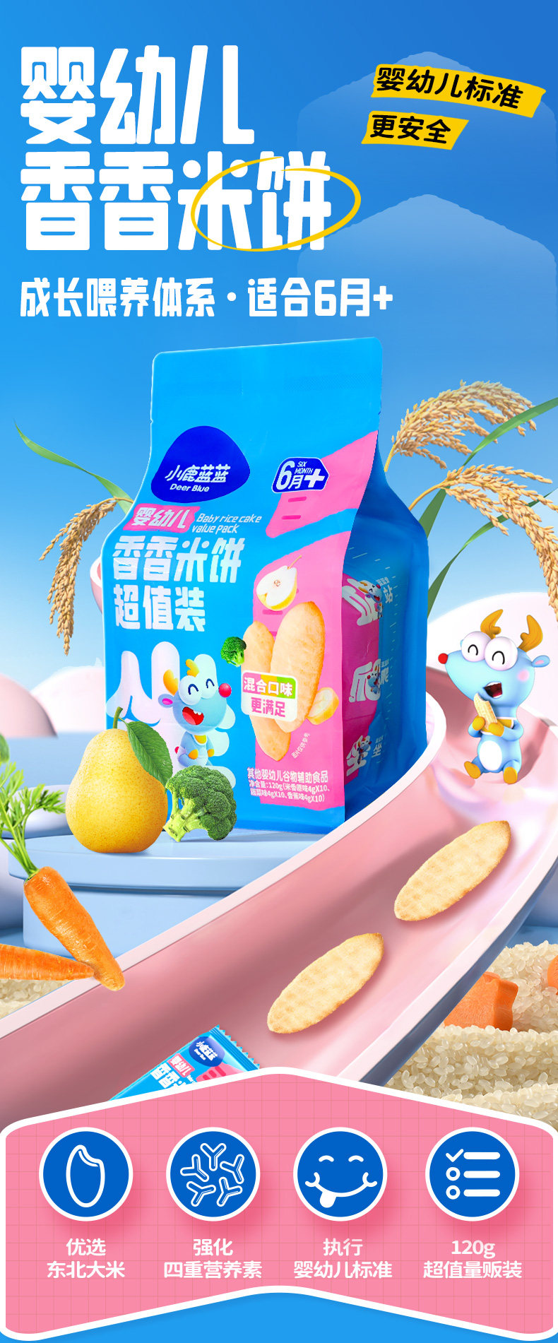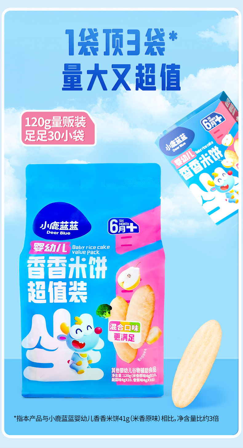[Little Deer Lanlan]Infant Rice Crackers Baby Snack Food Children's Teething Biscuits Large Pack No Added White Sugar