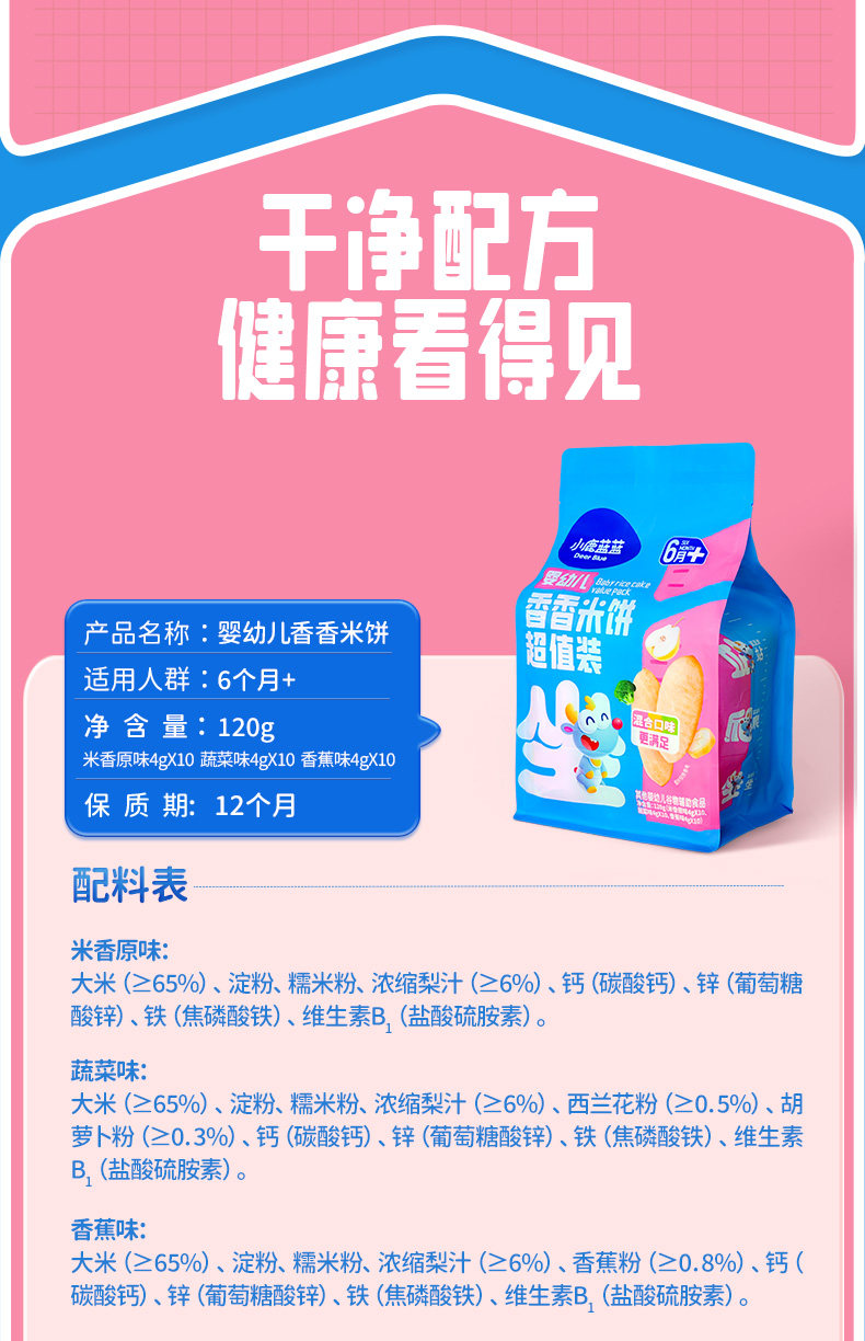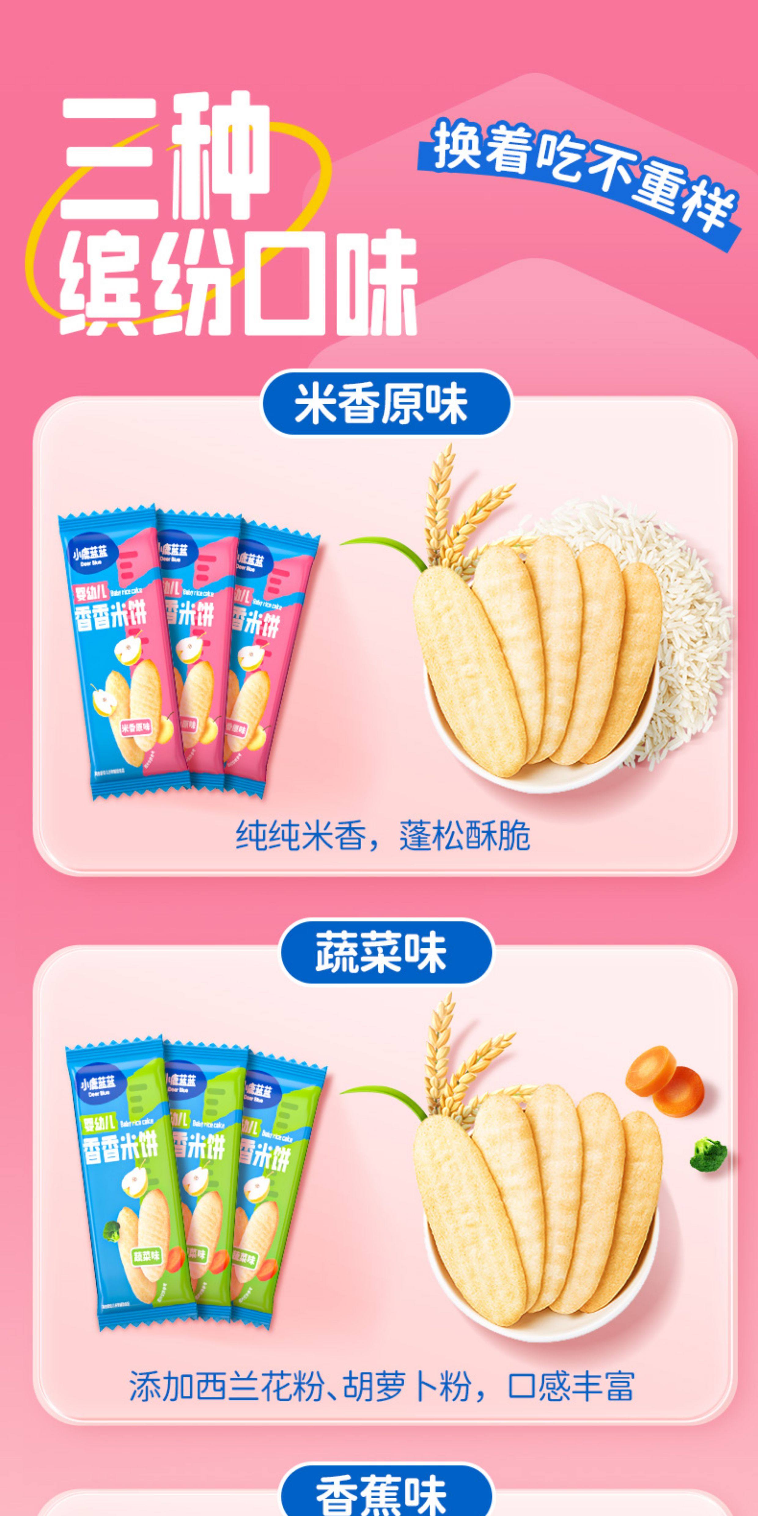 | Taste | [Original + Vegetables + Banana] Mixed Flavor 120g,Rice Cake Mixed Flavor 120g*2 Bags,Infant Fragrant Rice Cake/Vegetable Flavor/21G,Rice Cake Original Flavor 32g,Original Flavor 41g*1 Box,Rice Cake Banana Flavor 41g,Vegetable Flavor 41g*1 Box,Rice Flavor Original Flavor 41Gx2 Boxes,Rice Cake Original Flavor 41g + Rice Cake Vegetable Flavor 41g,Rice Flavor Original Flavor 41Gx3 Boxes,Rice Cake Vegetable Flavor 41Gx3 Boxes,Rice Flavor Original Flavor 41Gx5 Boxes,Original Vegetable Banana Rice Cake Combo / 123g,[about 3 Times the Quantity] Rice Flavor Original Flavor 120g |