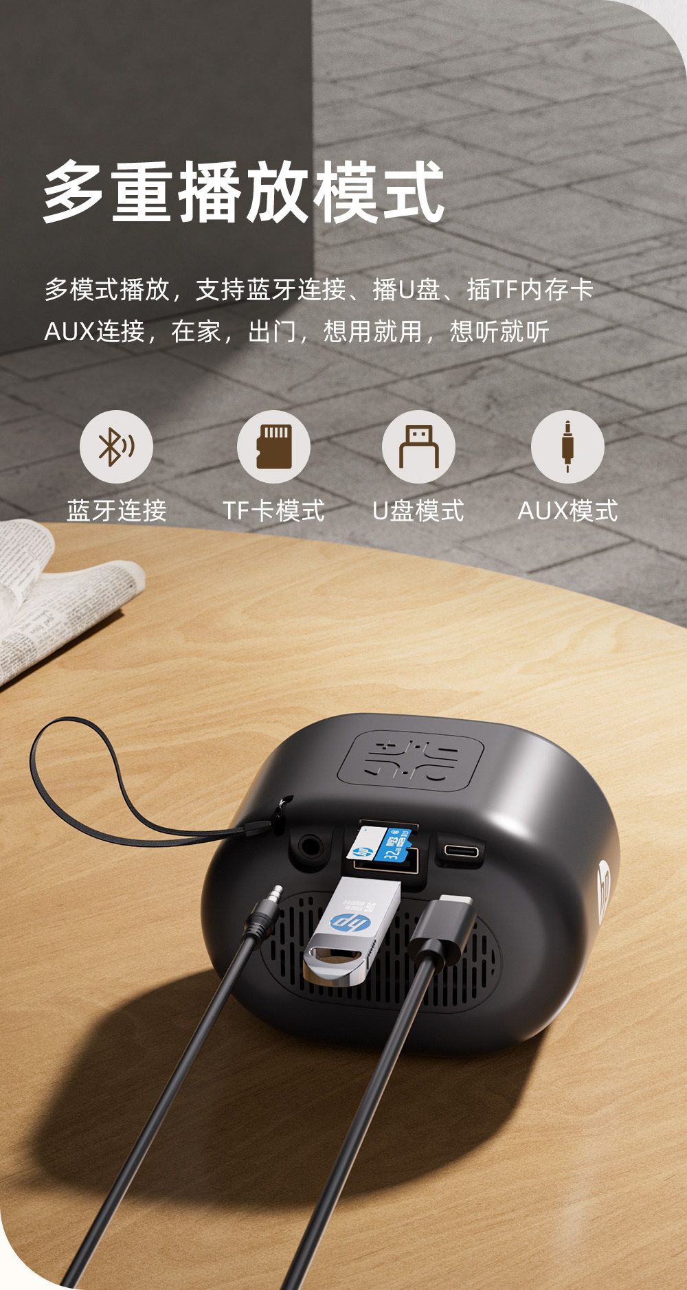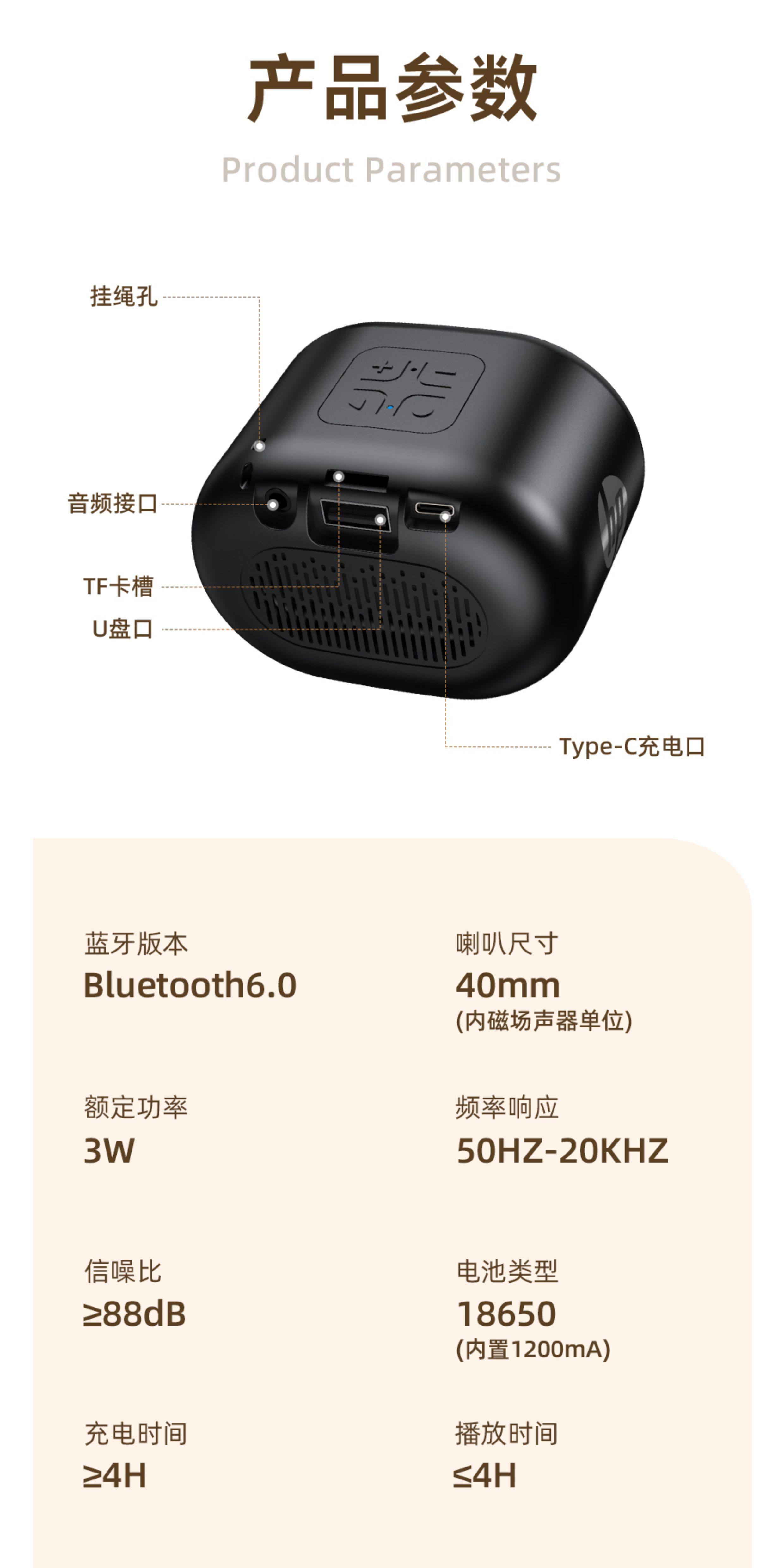 Hp Bluetooth Speaker Mini Portable Card-Insertable USB Drive Square Dance Speaker Wireless Small Music Player