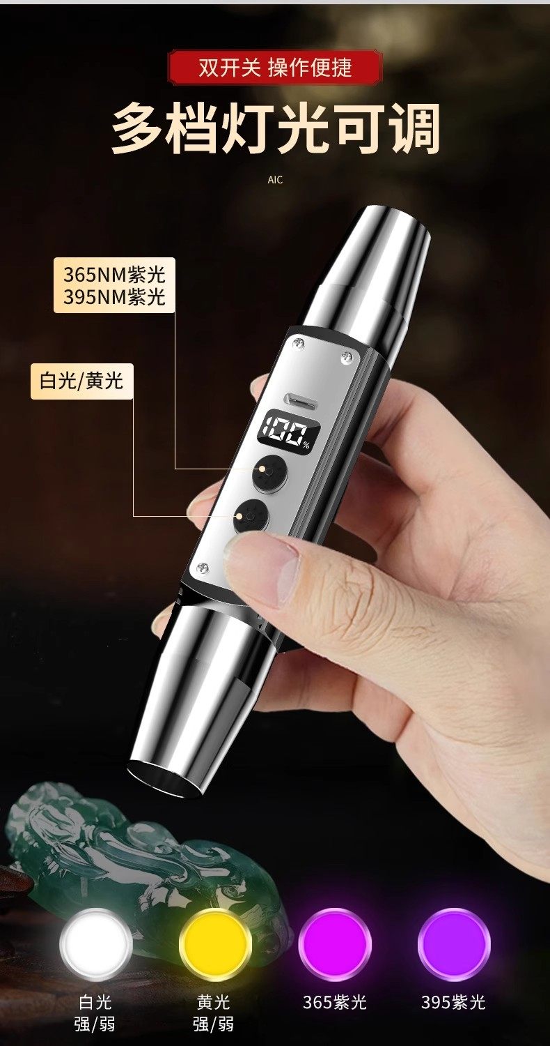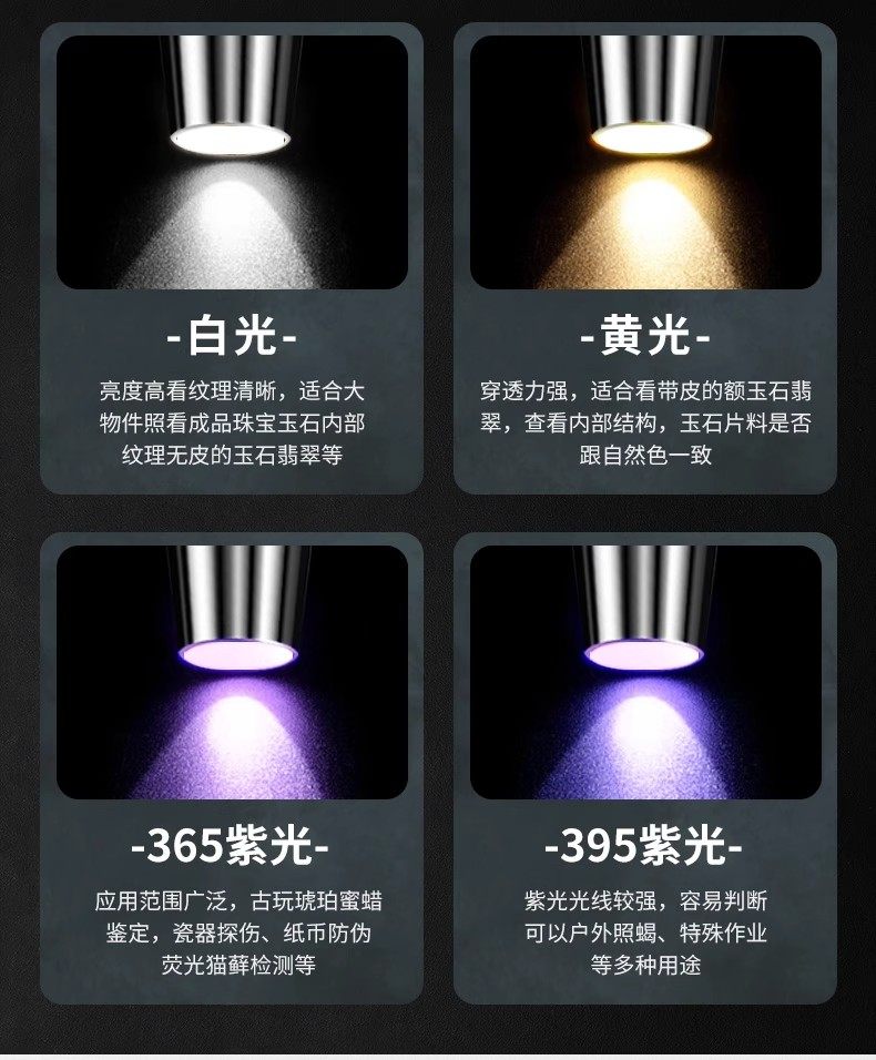 Special Flashlight for Jade Identification, Strong Light for Tobacco and Alcohol Identification, Jade Viewing, 365N Money Detector, Ultraviolet Light