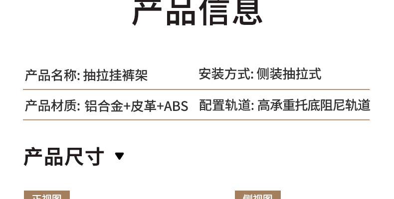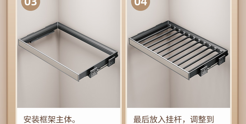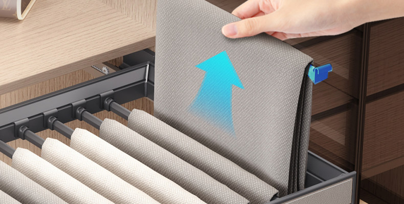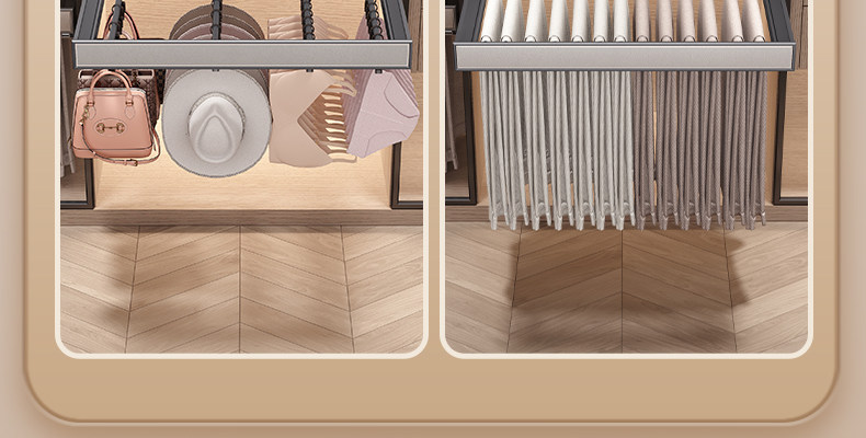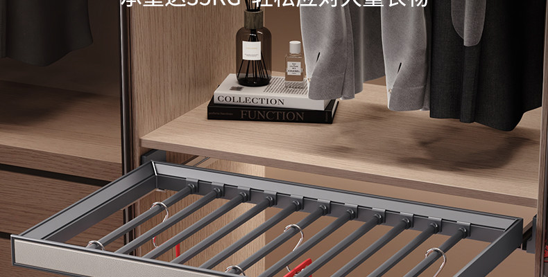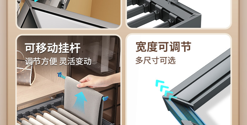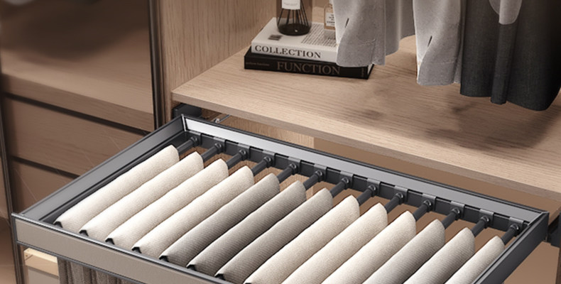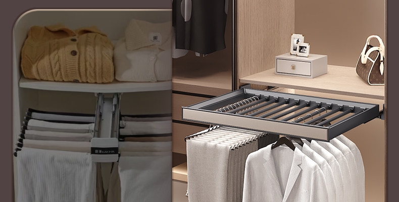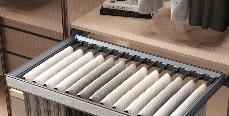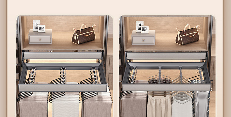 Wardrobe Built-In Pull-Out Trouser Rack with Telescopic Slide Rail, Side-Mounted Multifunctional Trouser Rack, Hanging Rod for Trousers