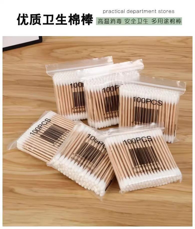 [Jinhuang]Double-Ended Cotton Swabs for Ear Cleaning, Makeup, Disposable Sanitary Cotton Swabs, Small Pointed Tip Ear Pick, Wooden Stick, Cotton Swabs for Special Use