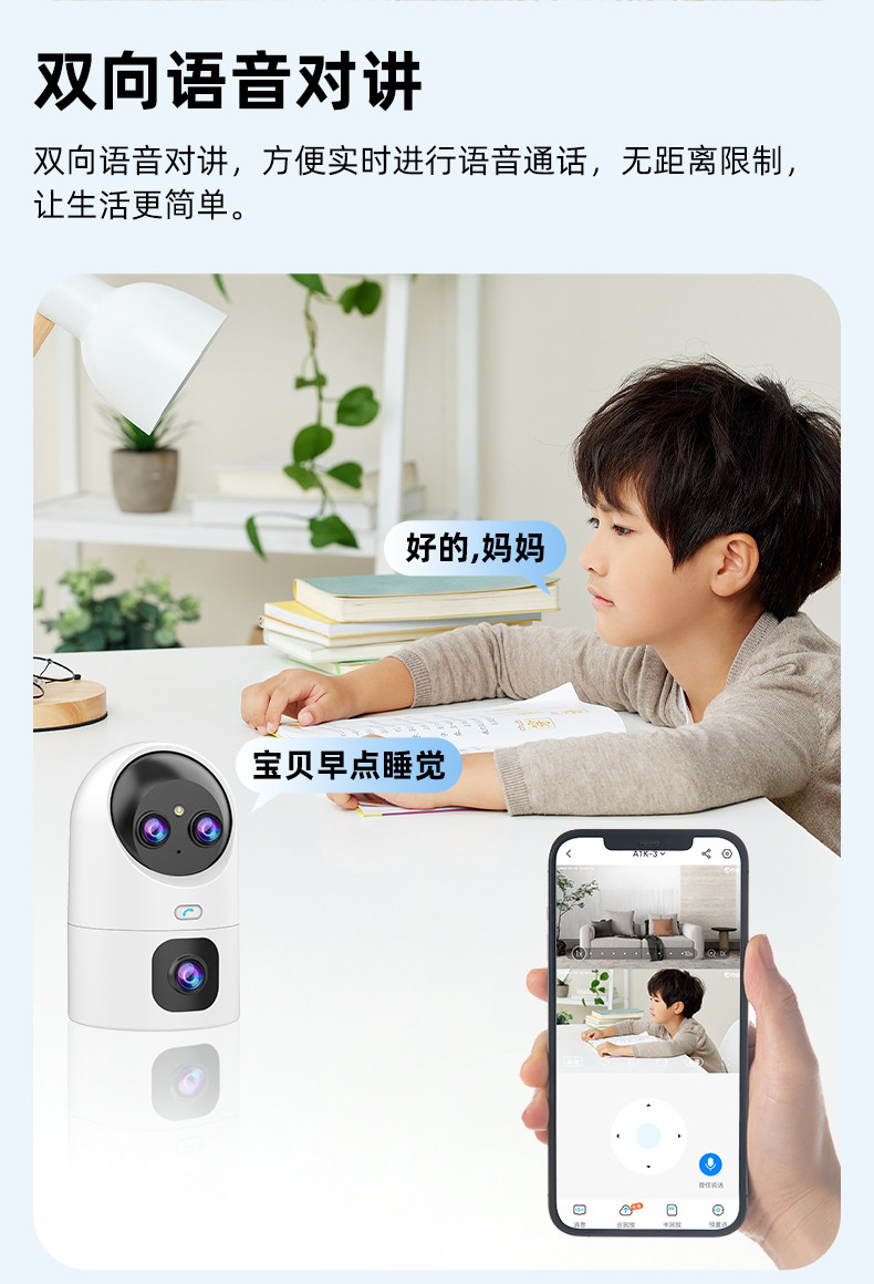 | Applicable Scenarios | Remote Communication and Socialization,Pet Care,Monitor Express Delivery and Parcel,Indoor,Nanny or Caregiver Monitoring,Distance Education and Learning,Door and Corridor Monitoring,Special Environment Monitoring |