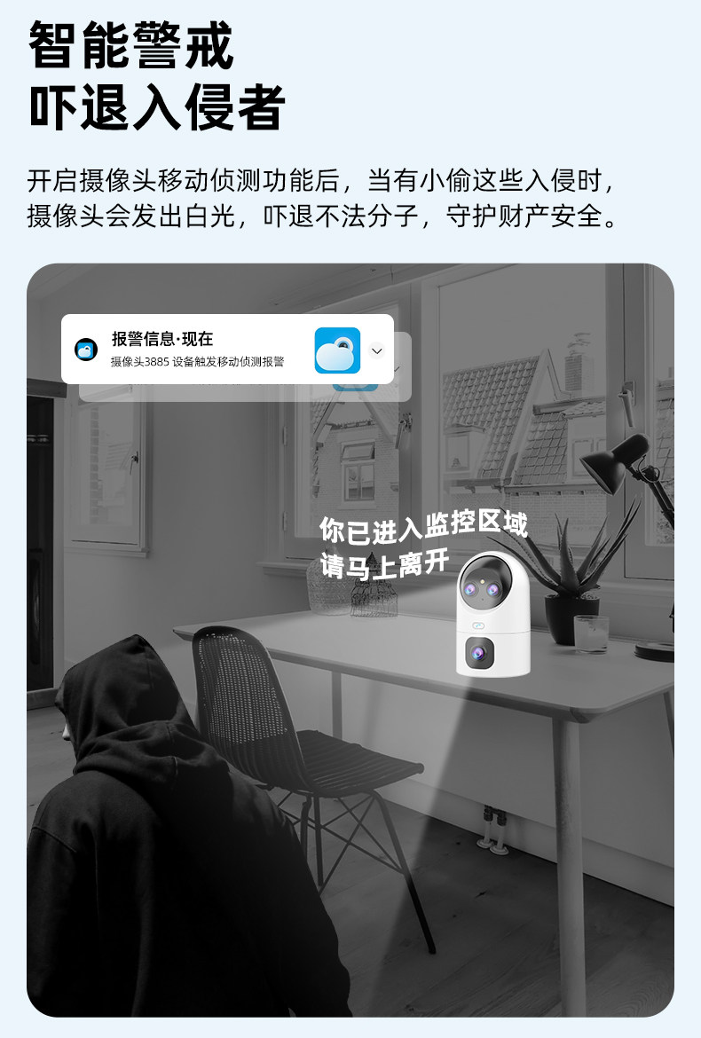 | Function | Pir Human Body Induction,Full Color Night Vision,Binocular and Multiocular,Mobile Tracking,Perimeter Alarm,Recording,360 Degree Monitoring,Two-Way Voice Intercom,Mobile Monitoring |