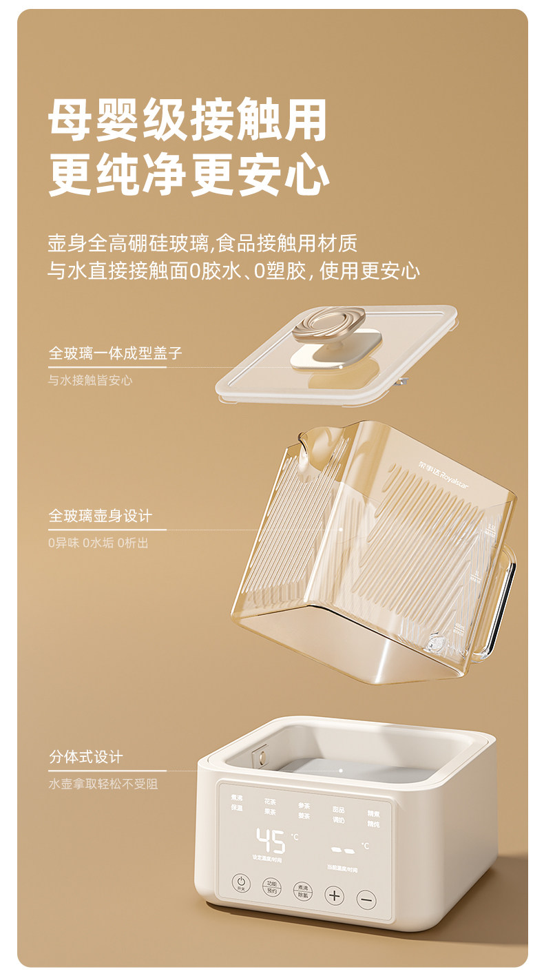 Royalstar All-Glass Constant Temperature Kettle, Baby-Specific Water Boiling Kettle, Milk Making Machine, Smart Home Milk Warmer and Milk Mixer