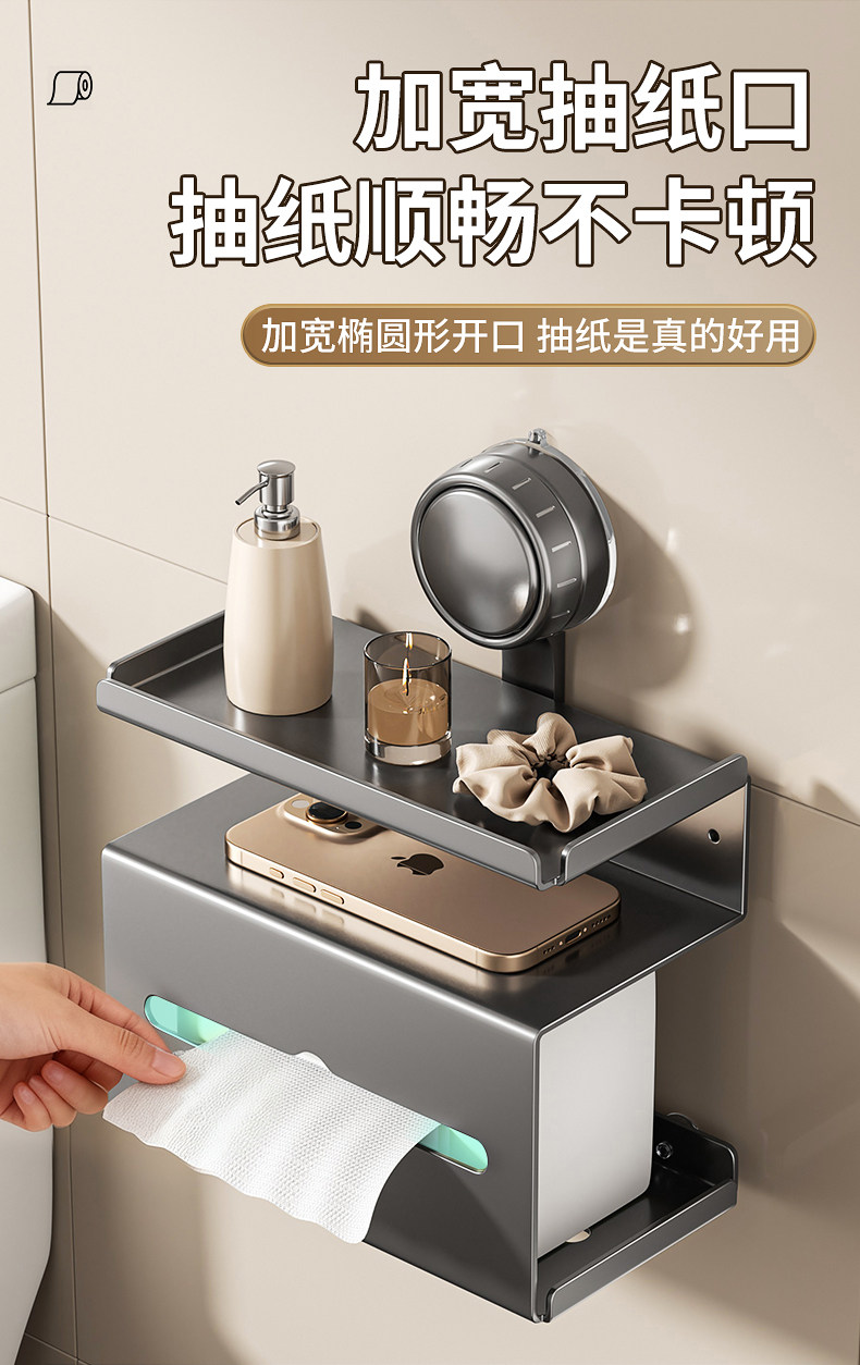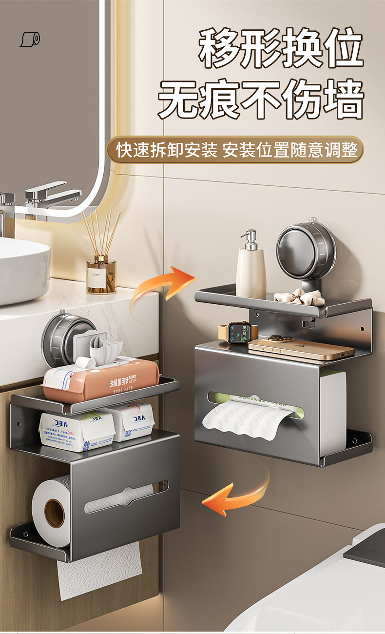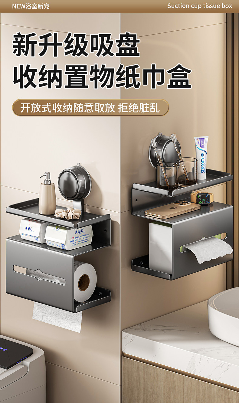 No-Drill Tissue Holder for Bathroom, Toilet Paper Box, Wall-Mounted Storage Rack, Strong Load-Bearing Suction Cup, Movable