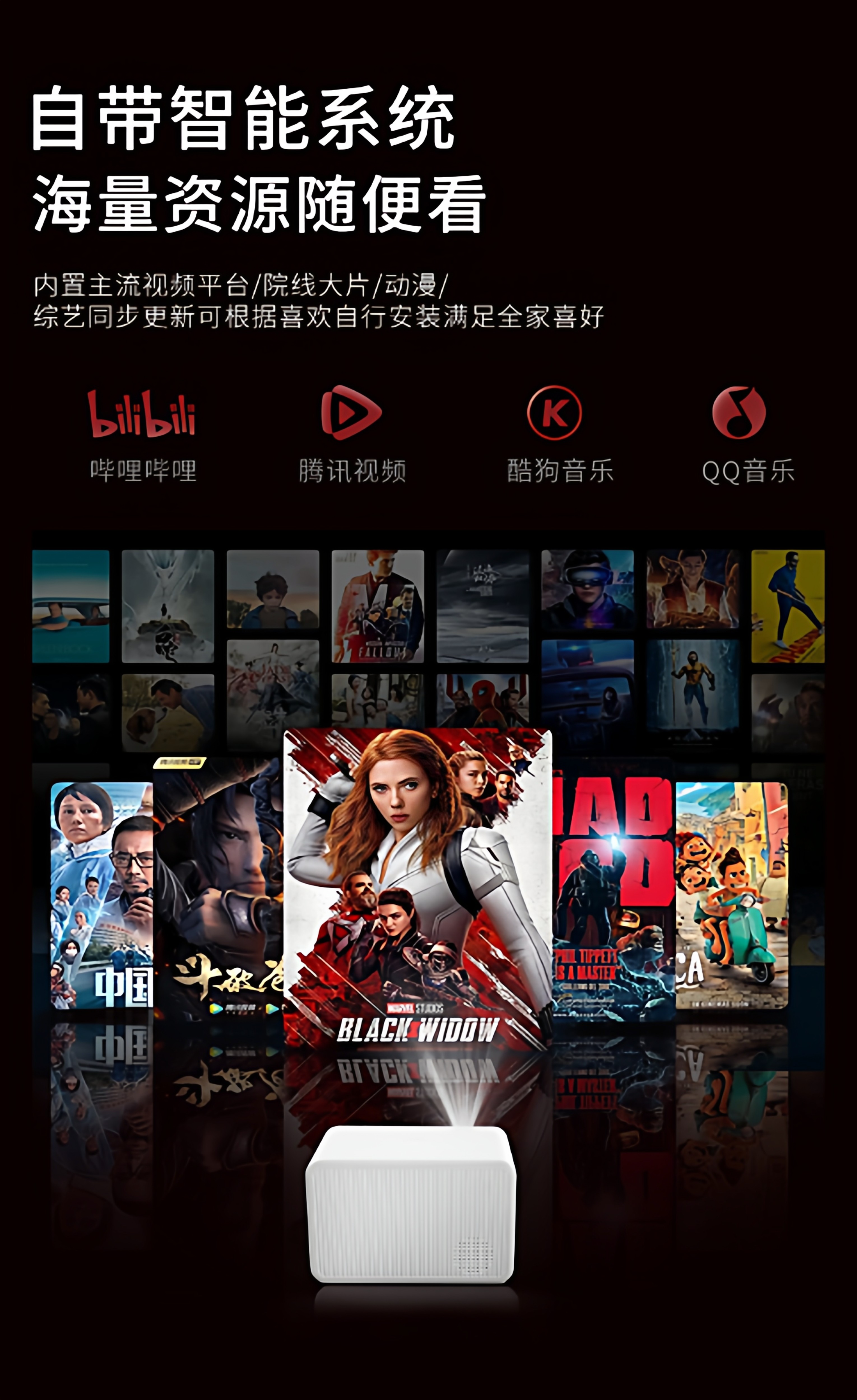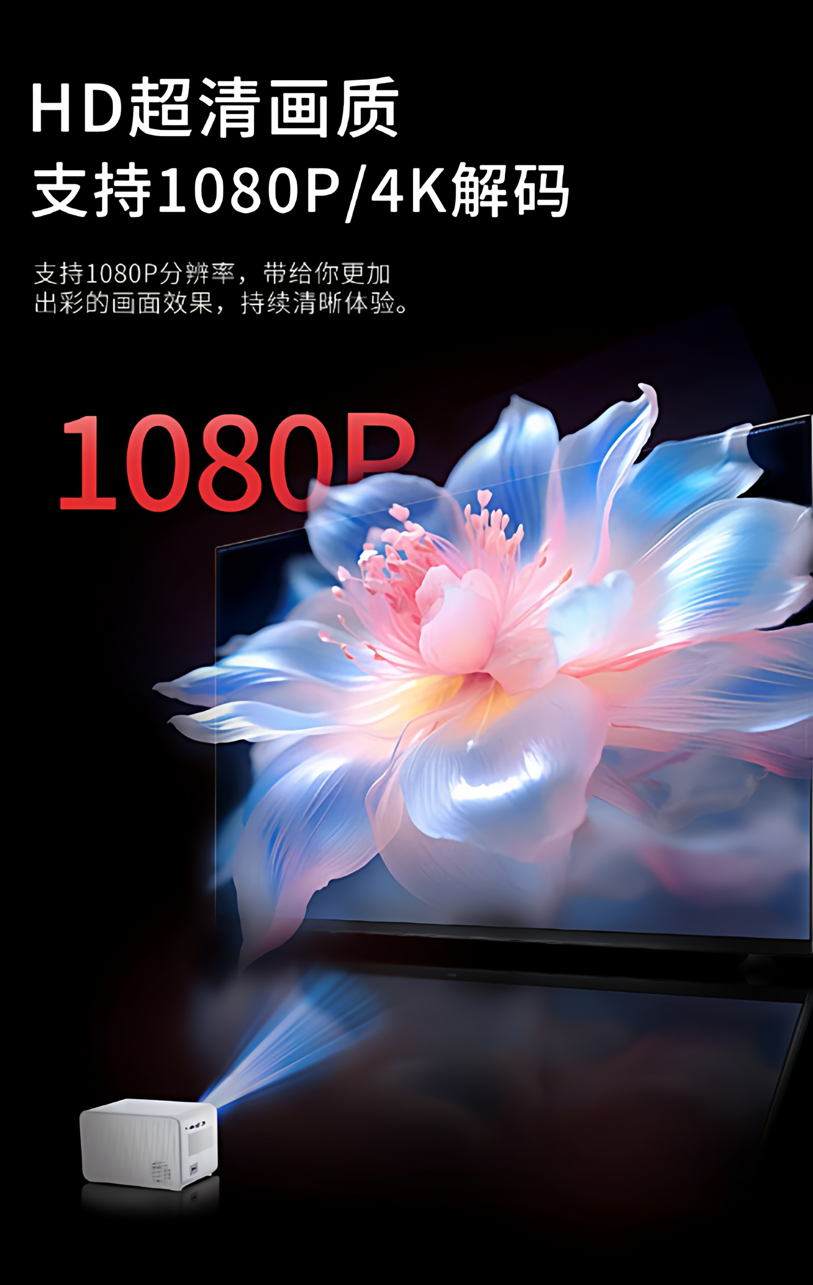 [Chigo's Best Value Projector]2026 New Ultra-Hd Smart Projector for Home Wall Projection, Bedroom, Living Room, Home Theater, Mobile Screen Casting, Micro Portable Projector for Dormitory Students, Tv